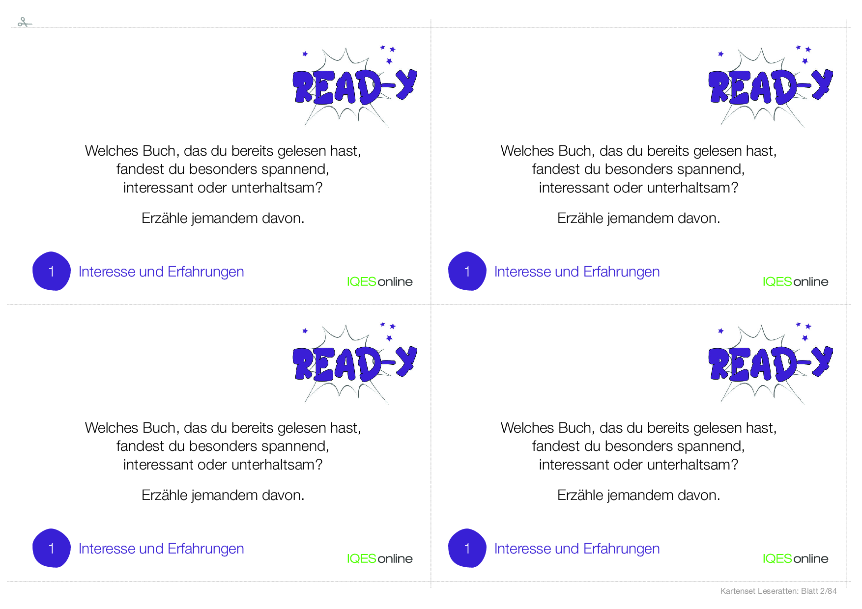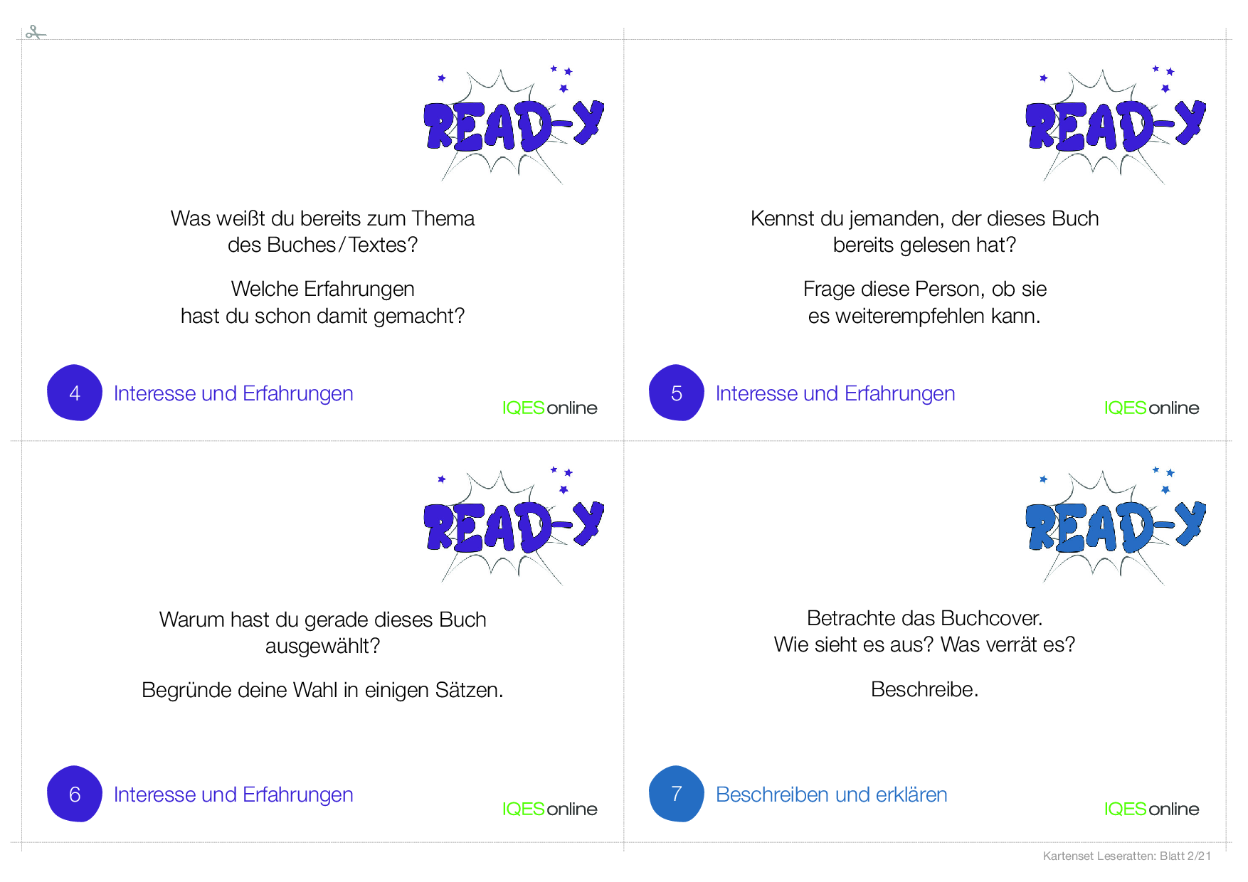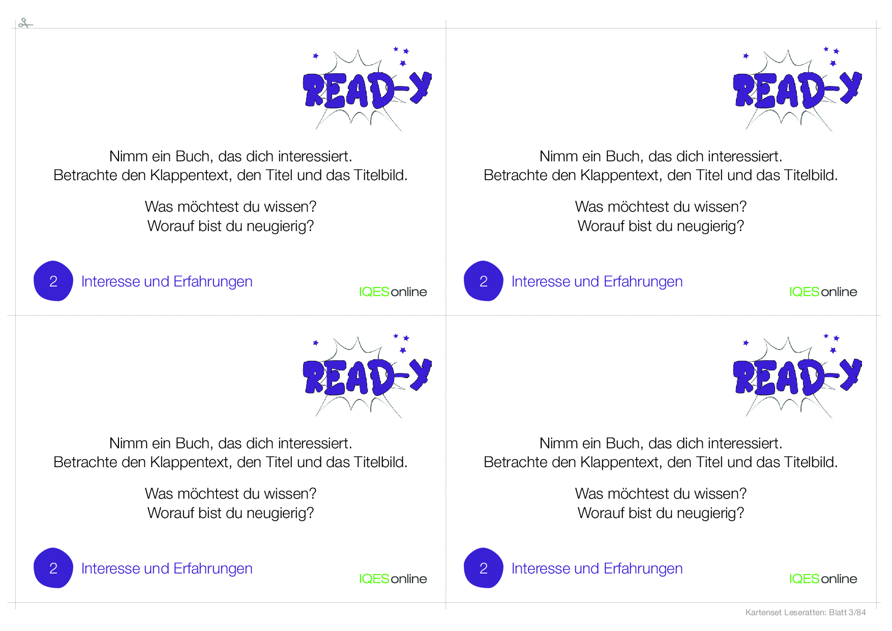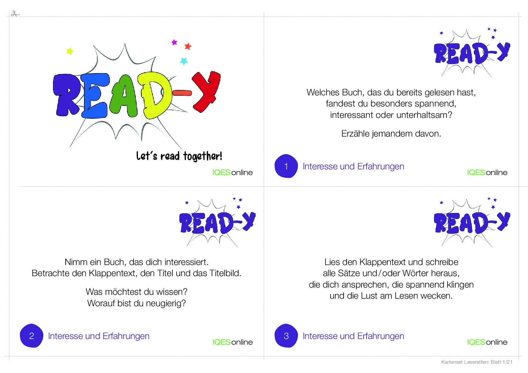 read-y? Karten für clevere Leserinnen und Leser