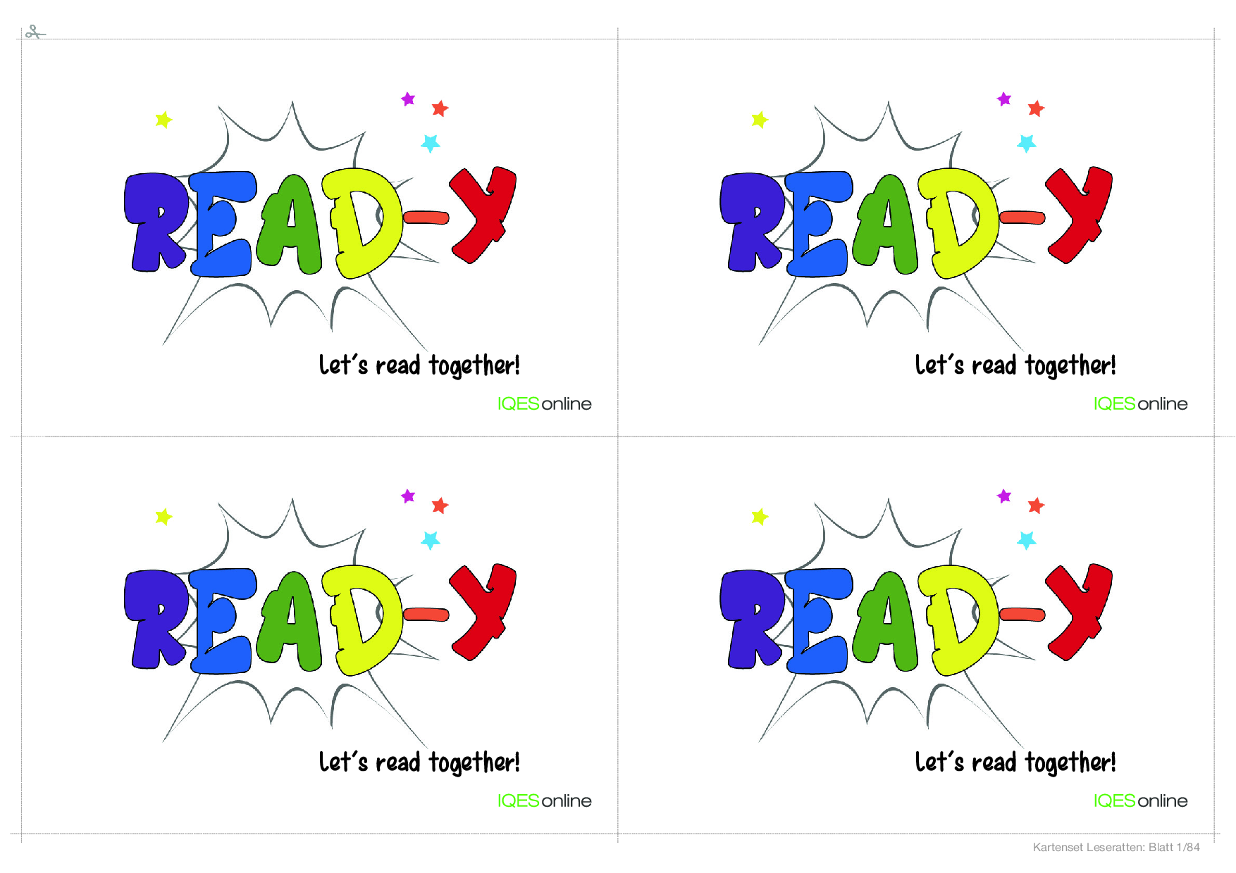 In diesem Dokument befindet sich eine Vorlage, um einen ganzen Klassensatz von Read-y Karten zu kopieren. Es befinden sich vier Karten der gleichen Karte auf einer DIN A4 Seite.