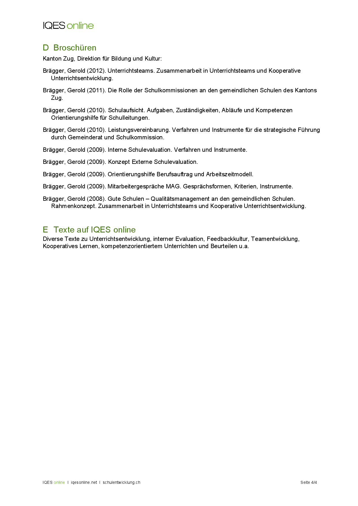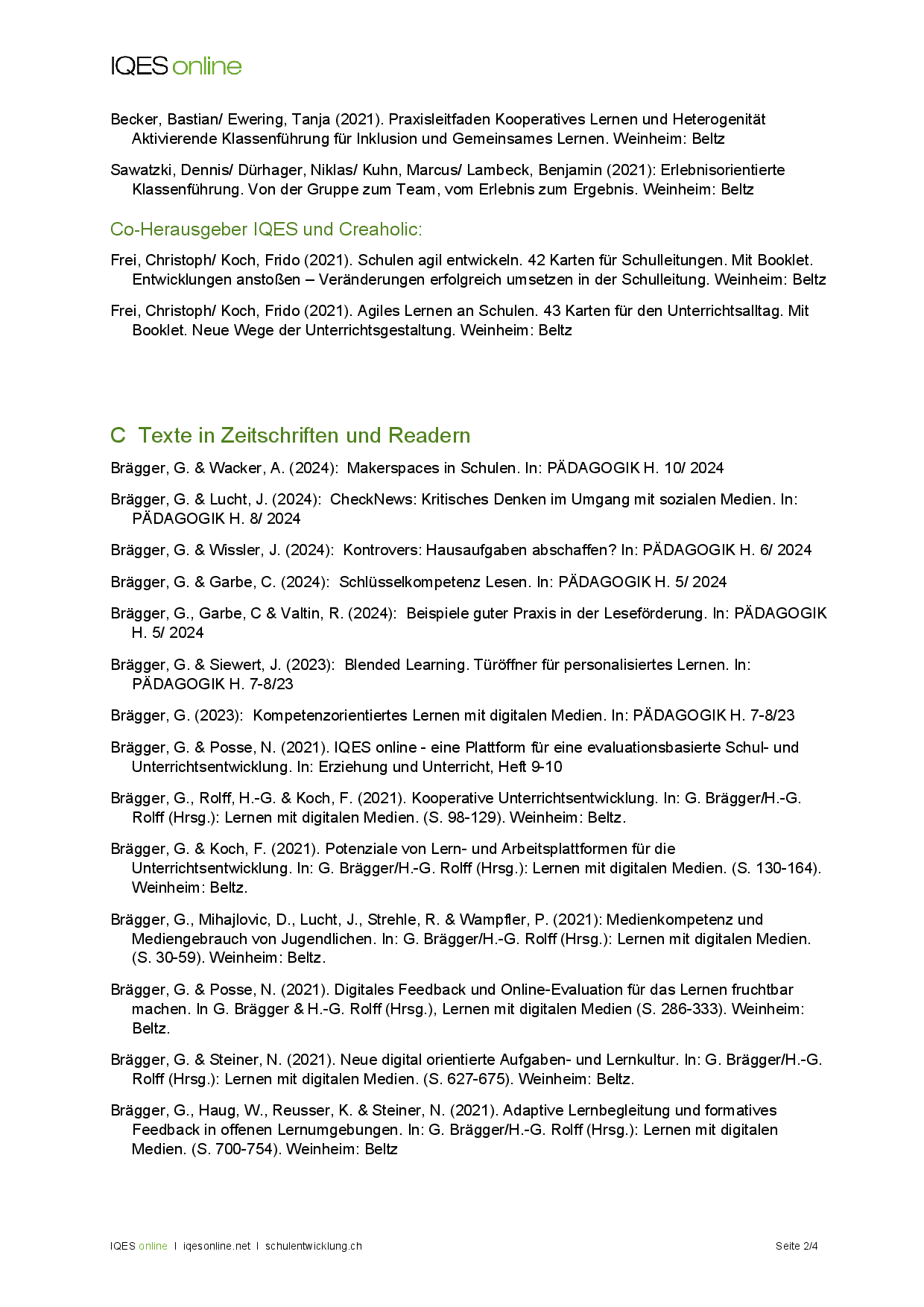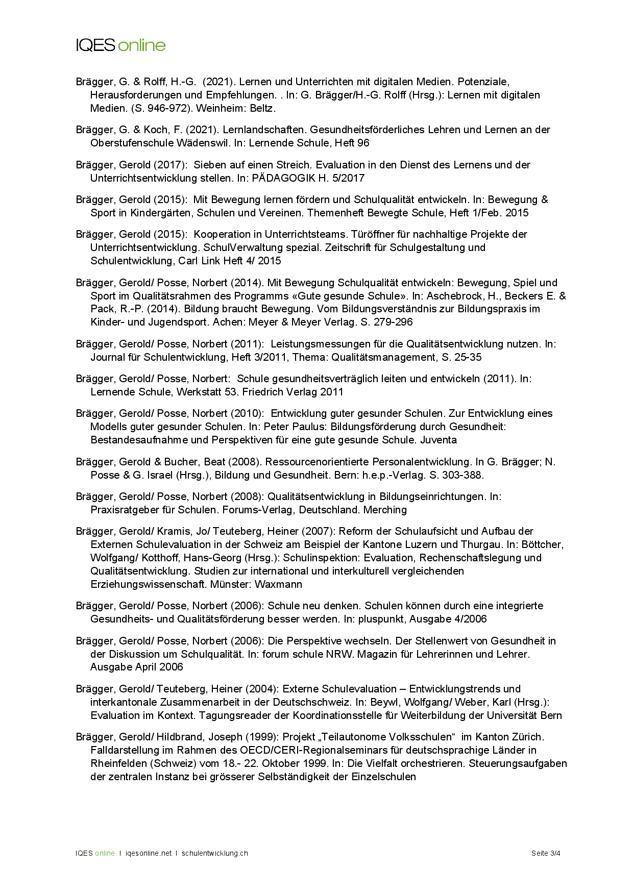 Publikationen Gerold Brägger