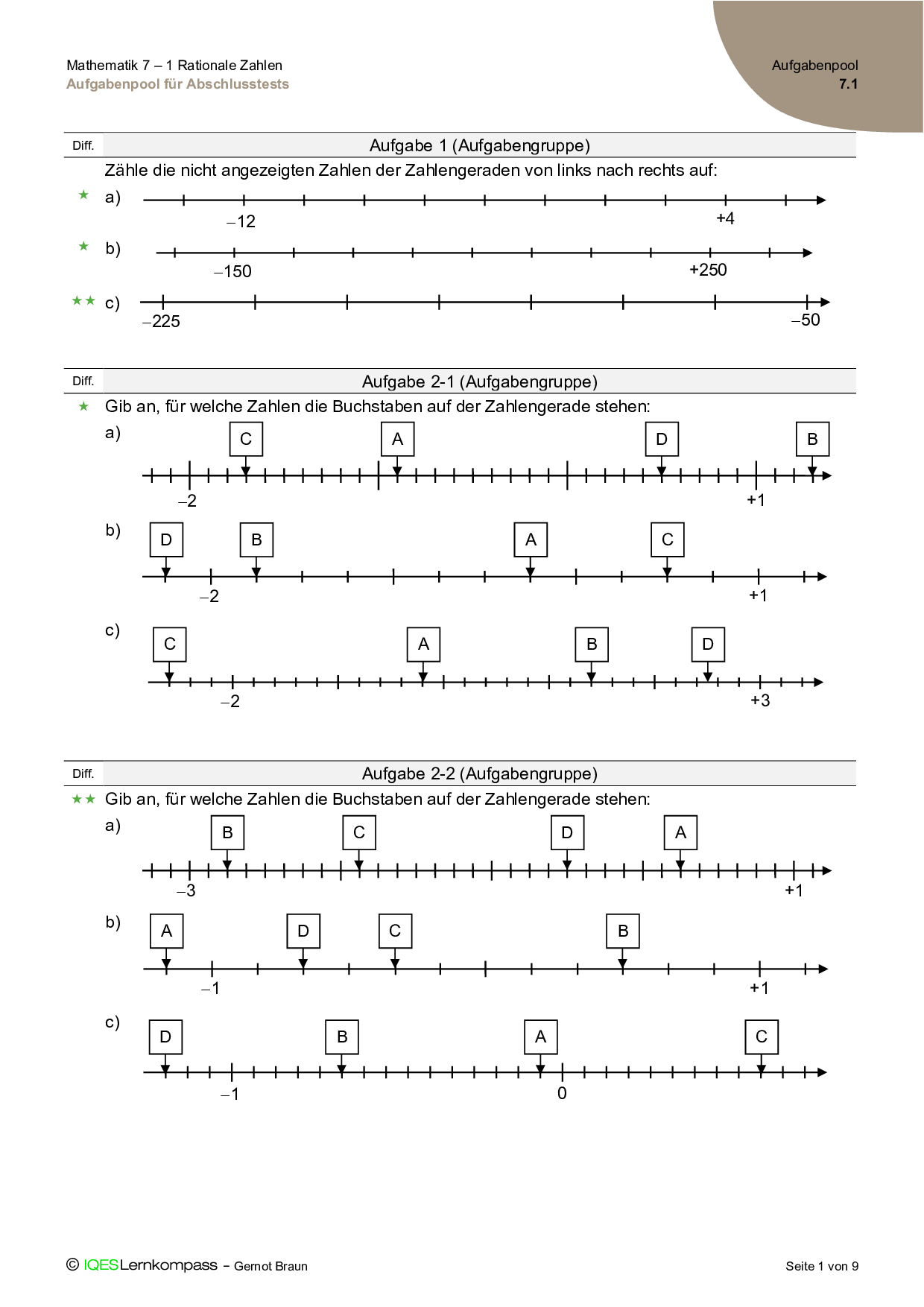 7.1 Rationale Zahlen – Aufgabenpool für Abschlusstests