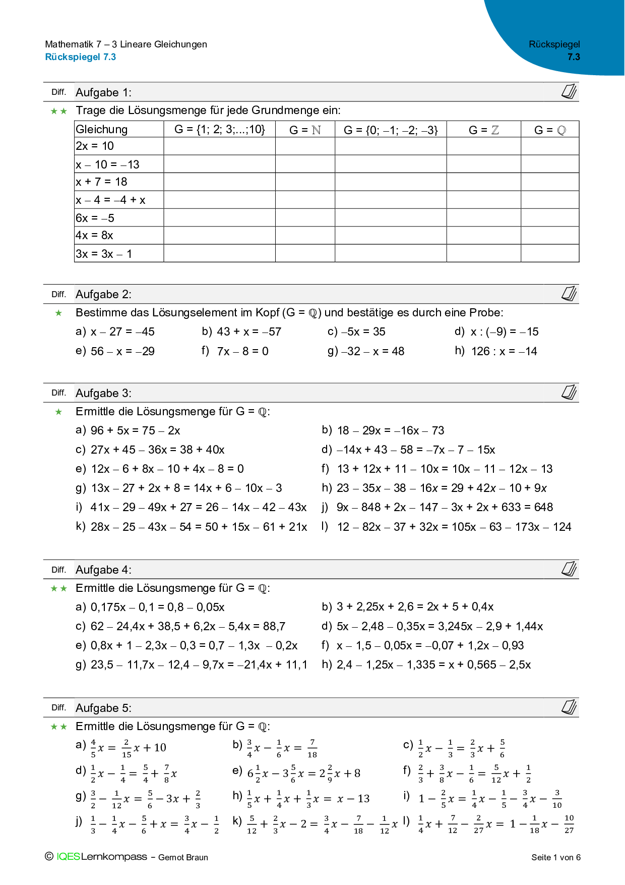 7.3 Lineare Gleichungen – Rückspiegel