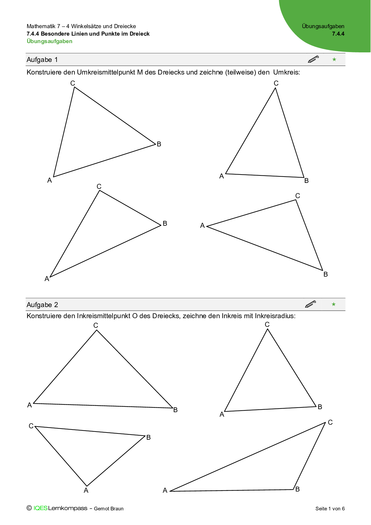 7.4.4 Besondere Linien und Punkte im Dreieck – Übungsaufgaben