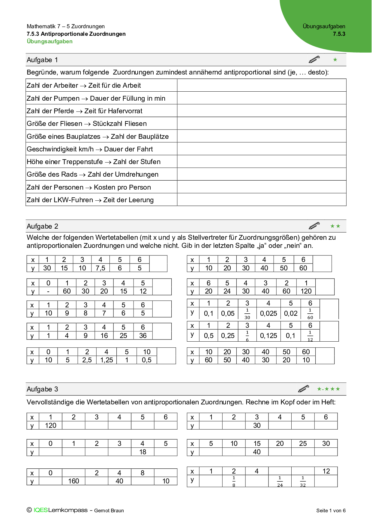 7.5.3 Antiproportionale Zuordnungen – Übungsaufgaben