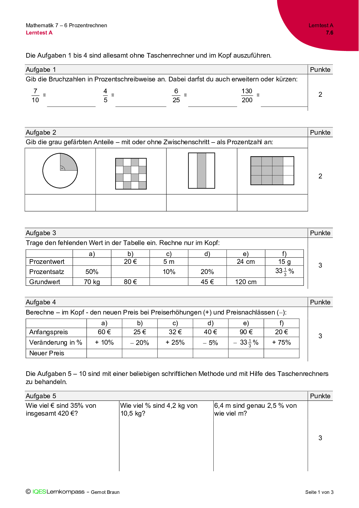 7.6 Prozentrechnen – Lerntest A