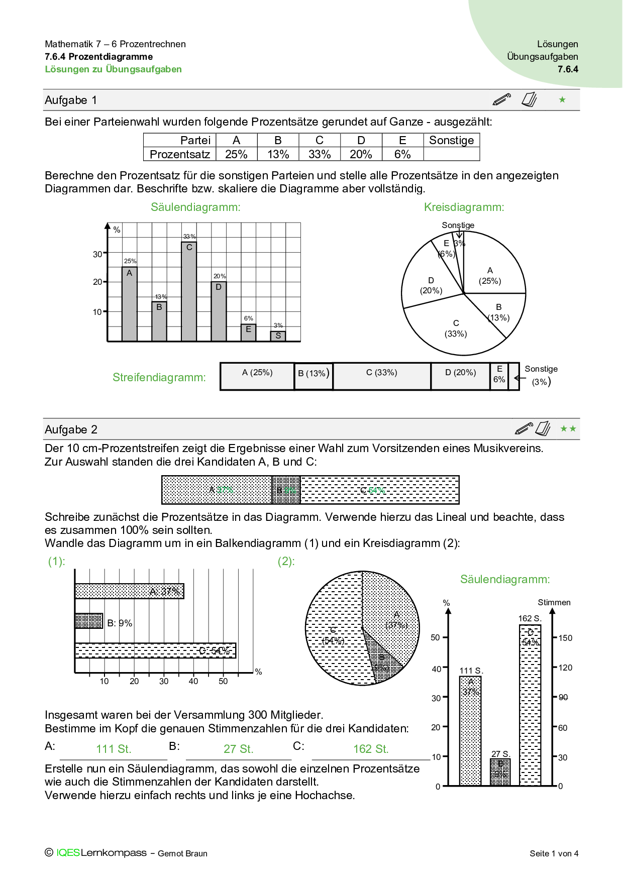 7.6.4 Prozentdiagramme – Übungsaufgaben mit Lösungen