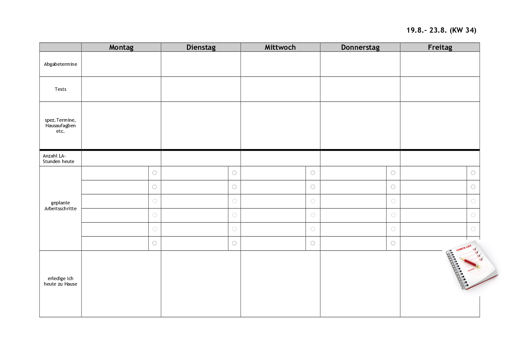 Hier finden Sie eine Vorlage für einen Wochenplan nach freier Form.