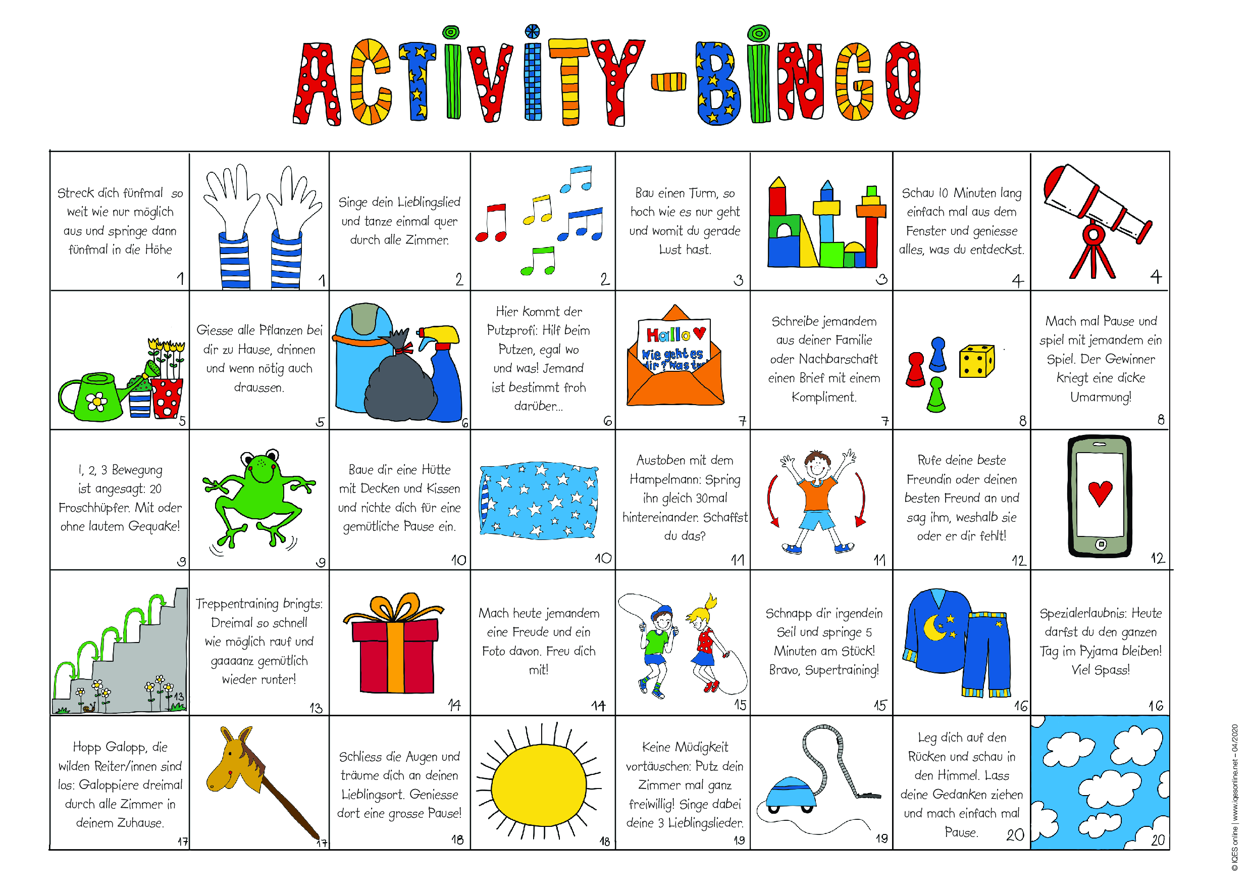 Das Activity-Bingo bringt etwas Abwechslung und natürlich Bewegung ins Lernen - und das hilft. Es gibt verschiedene Möglichkeiten, um mit dem Activity-Bingo zu spielen.