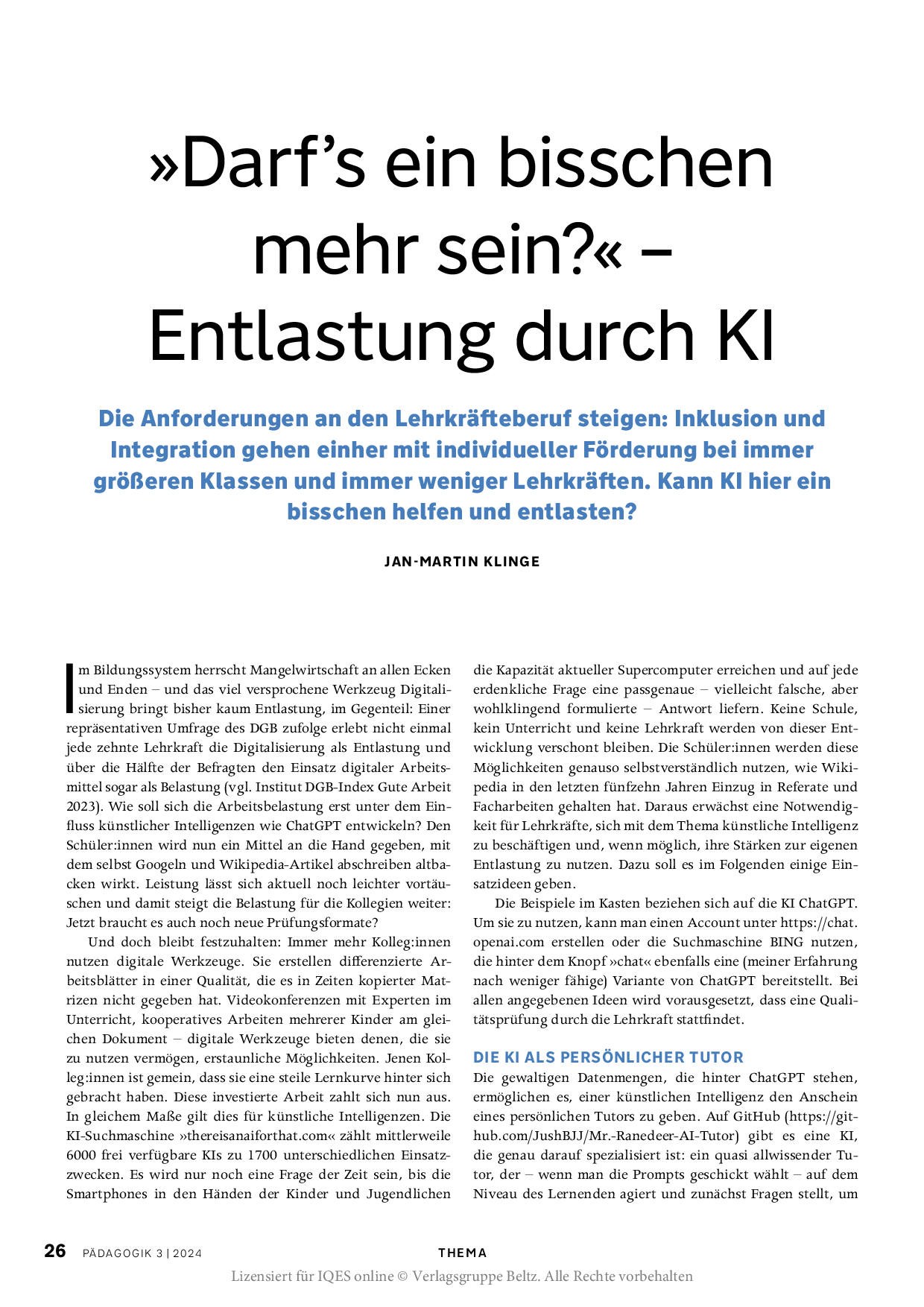 Herkunft: PÄDAGOGIK 5/24, Lizensiert für IQES online © Verlagsgruppe Beltz.