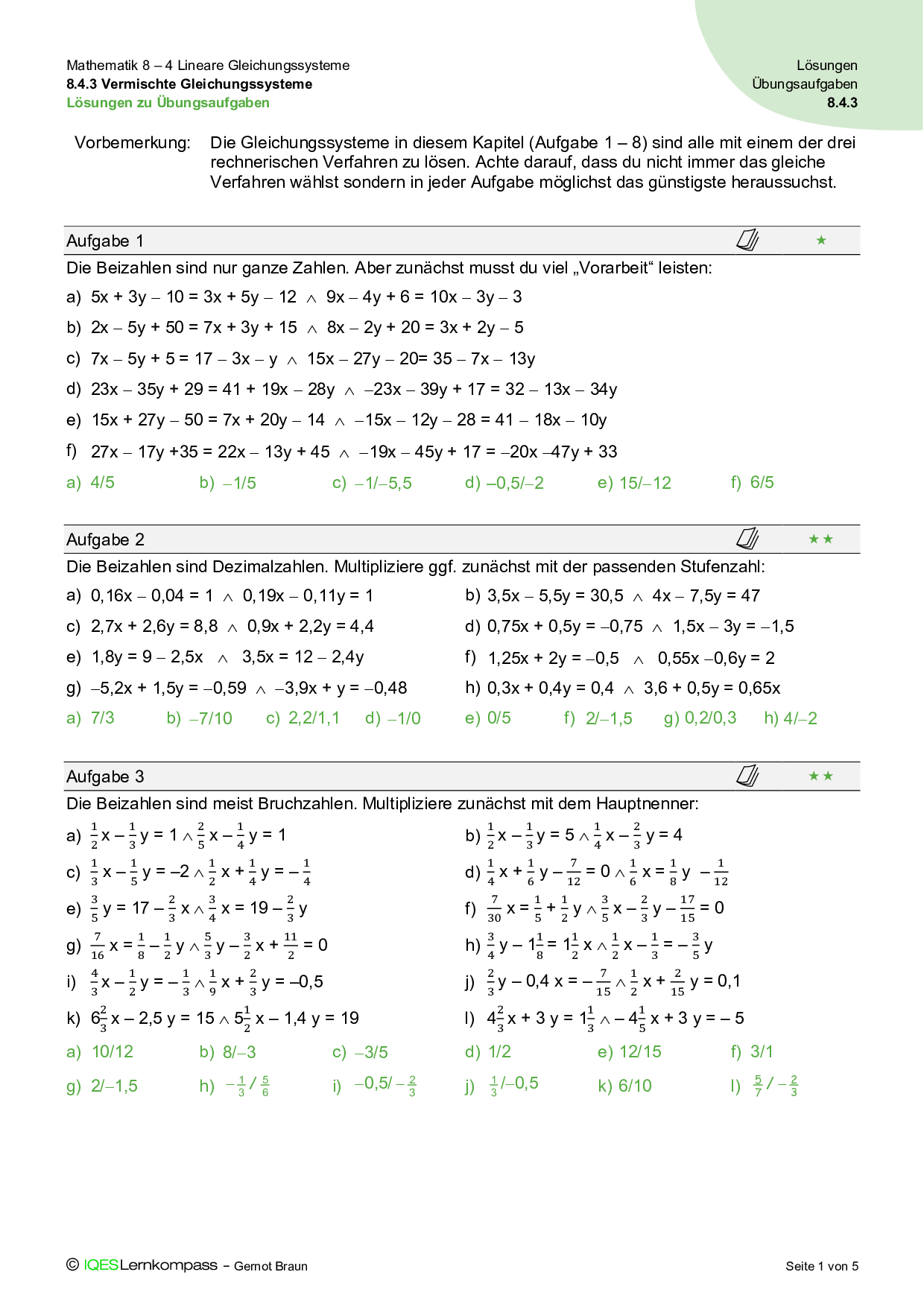 8.4.3 Vermischte Gleichungssystemen – Übungsaufgaben mit Lösungen