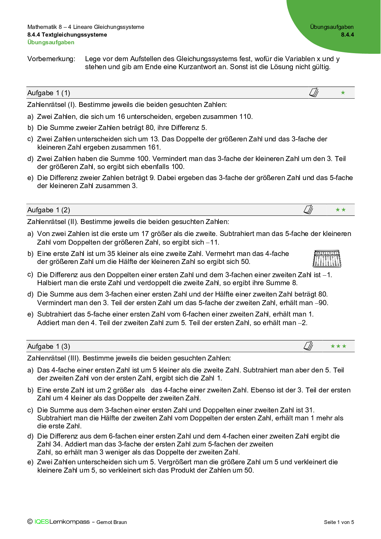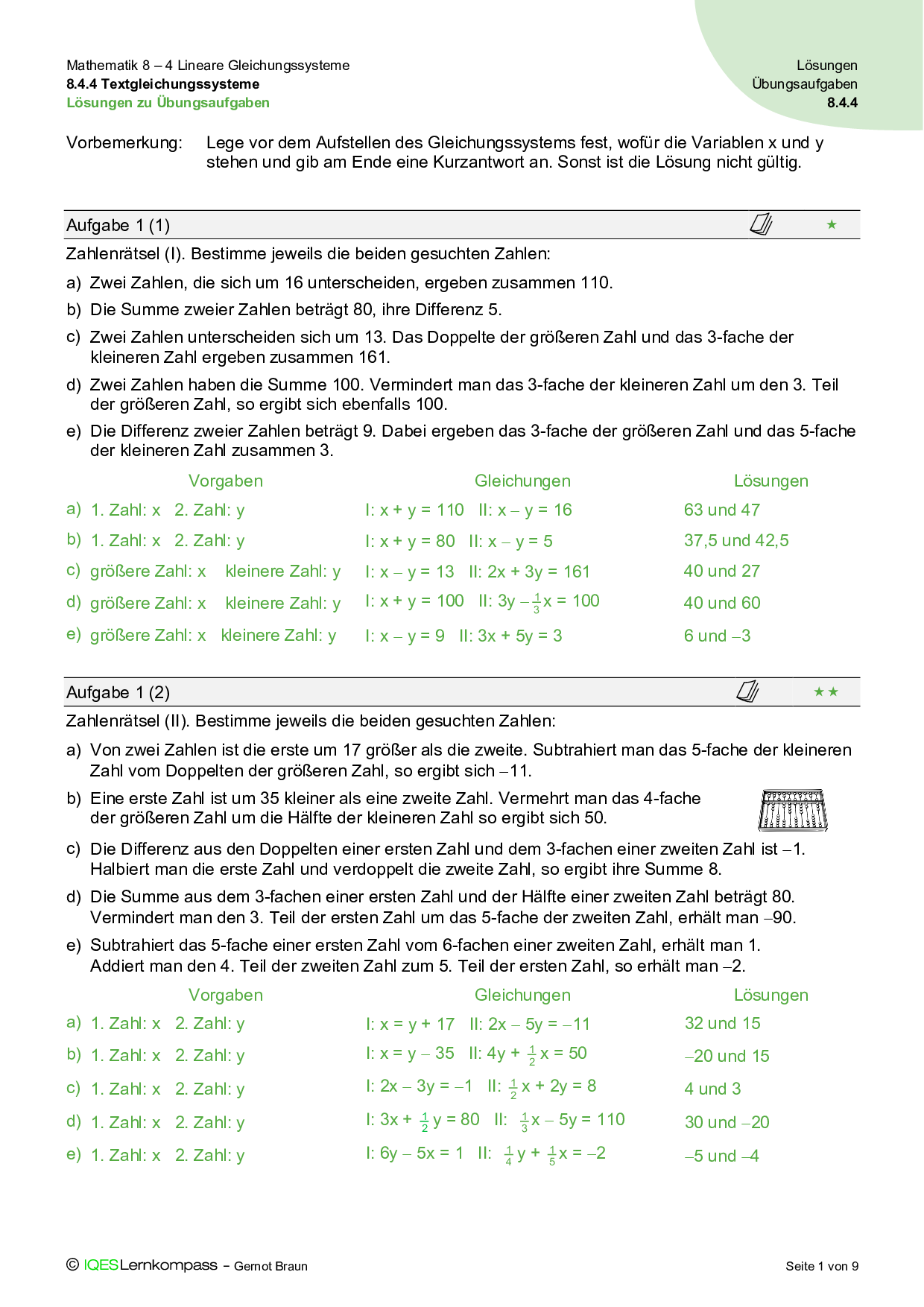 8.4.4 Textgleichungssysteme – Übungsaufgaben mit Lösungen