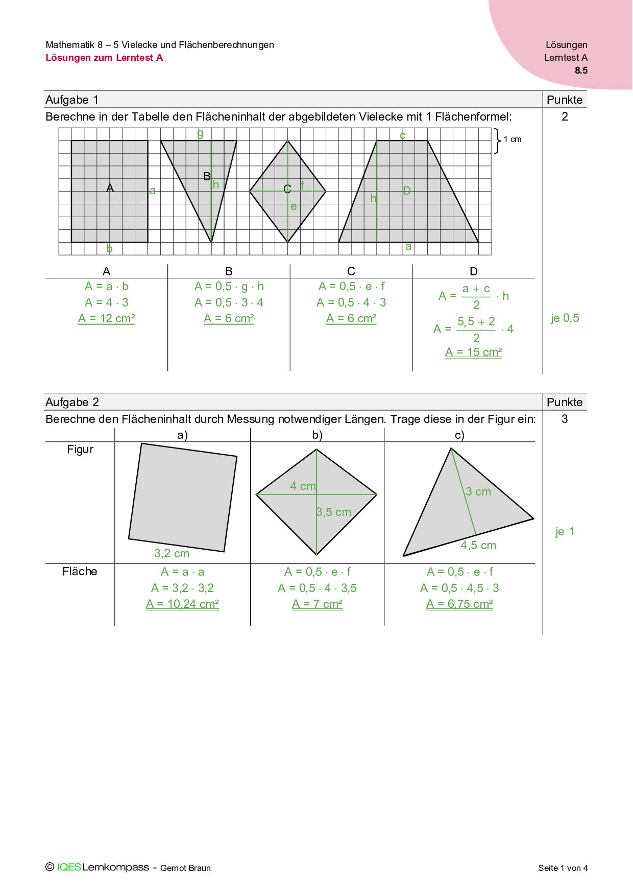 8.5 Vielecke und Flächenberechnungen – Lerntest A