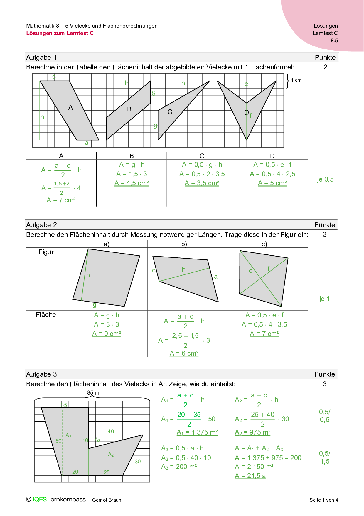 8.5 Vielecke und Flächenberechnungen – Lösungen zum Lerntest C
