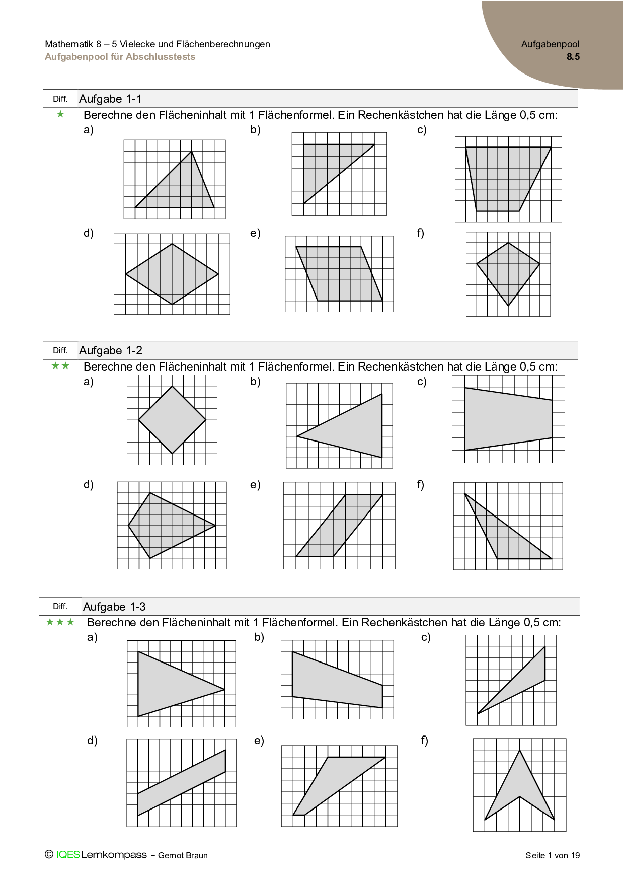 8.5 Vielecke und Flächenberechnungen – Aufgabenpool für Abschlusstests