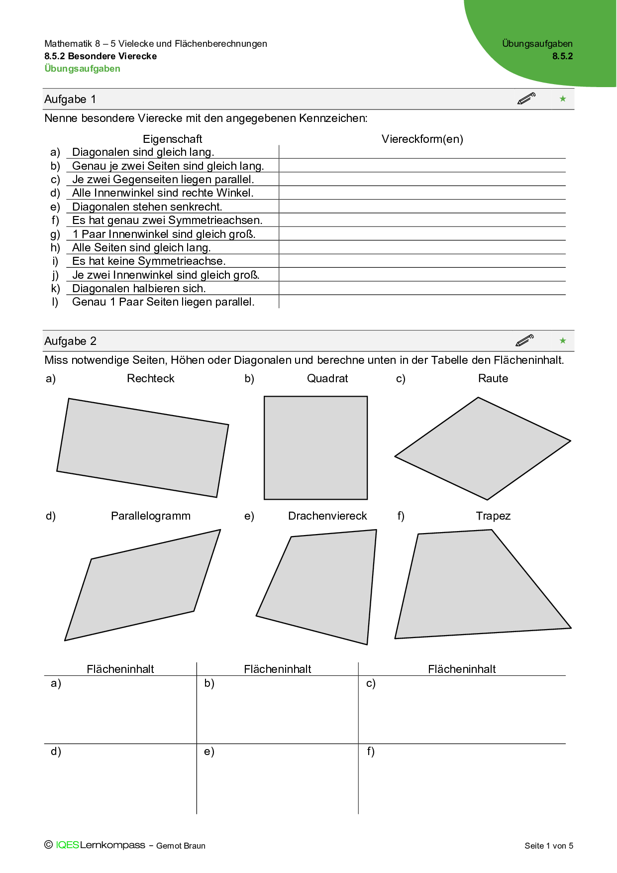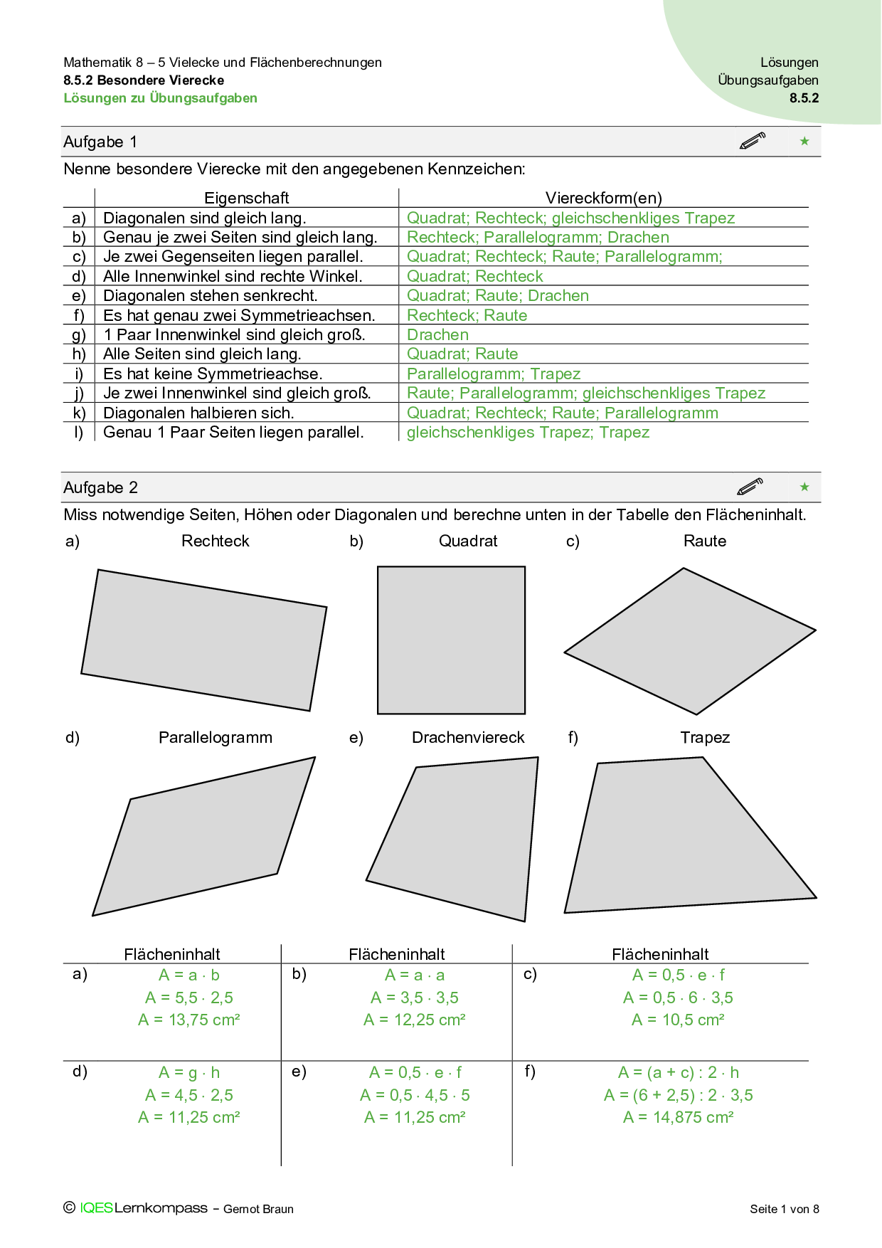 8.5.2 Besondere Vierecke – Übungsaufgaben mit Lösungen