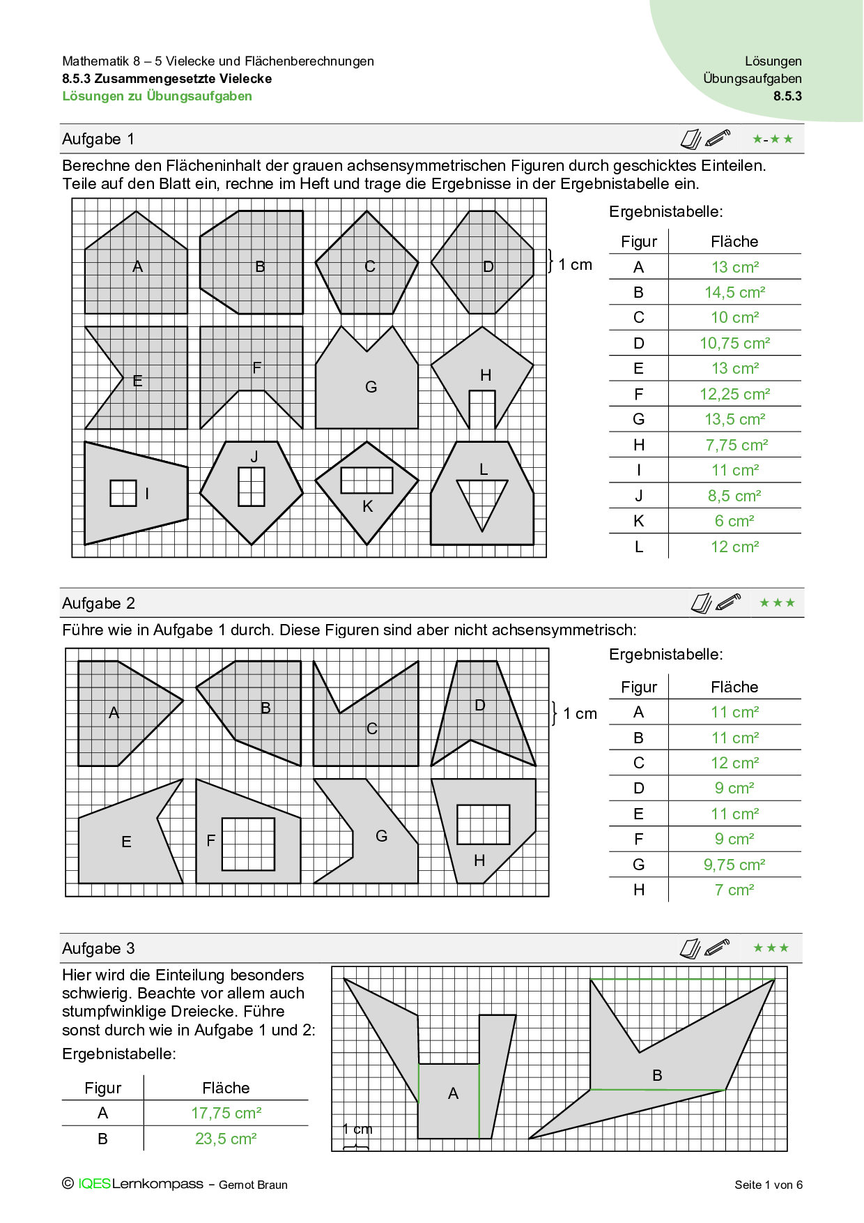 8.5 Vielecke und Flächenberechnungen – Lösungen zum Aufgabenpool für Abschlusstests