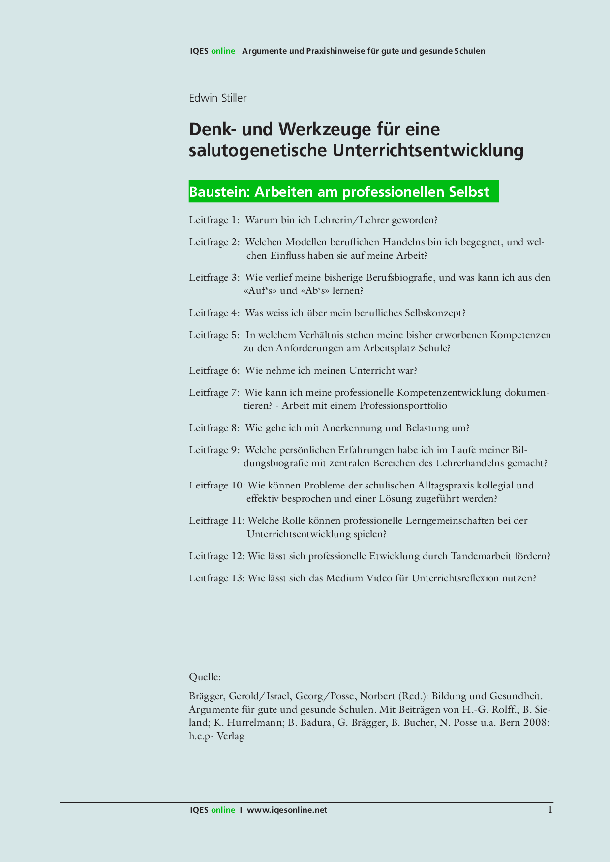 Denk- und Werkzeuge für eine salutogenetische Unterrichtsentwicklung I