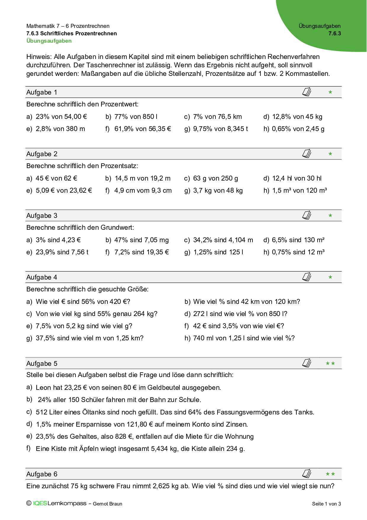7.6.3 Schriftliches Prozentrechnen – Übungsaufgaben