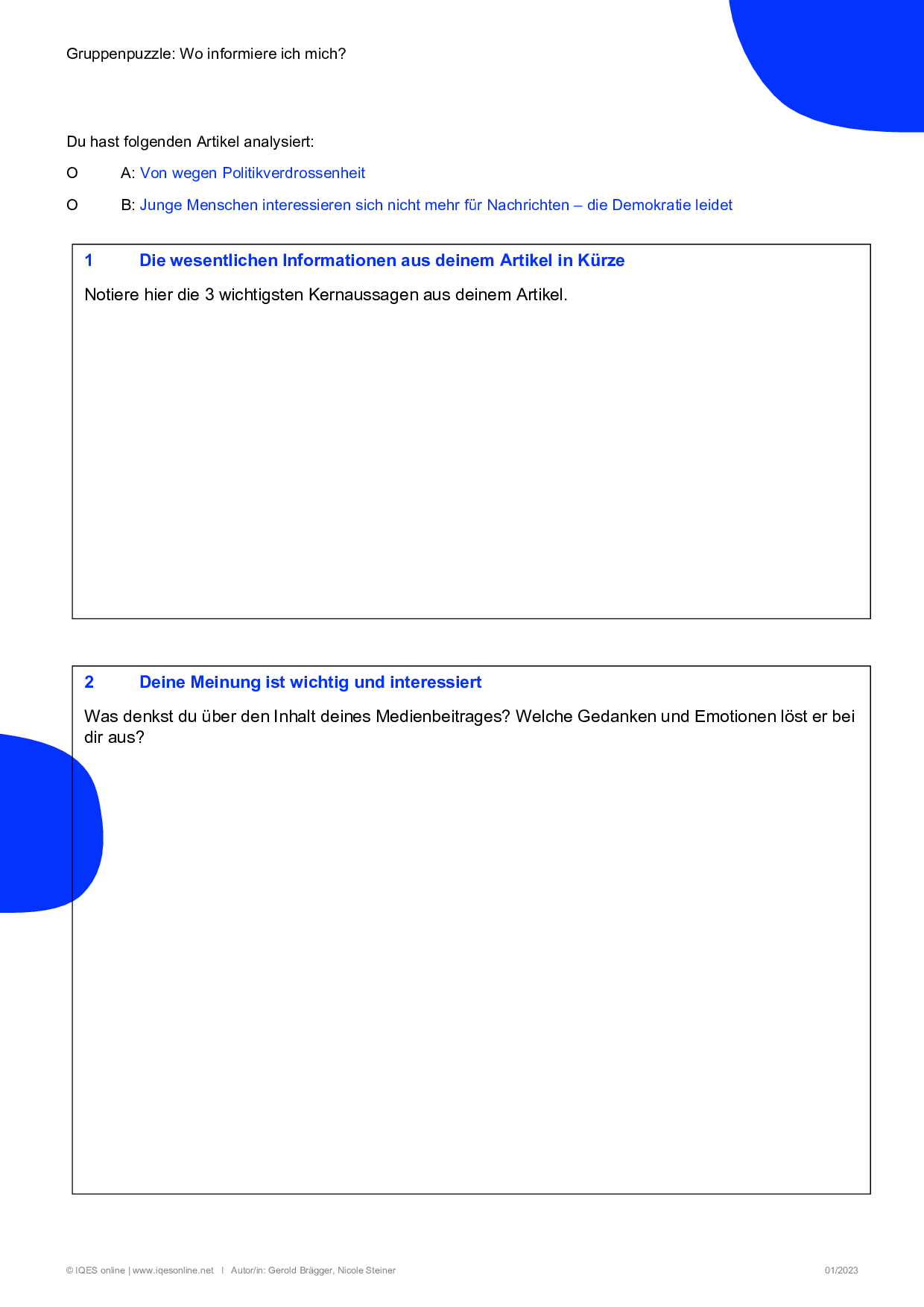 Arbeitsblatt/Fragenblatt »JournalistIn oder InfluencerIn«