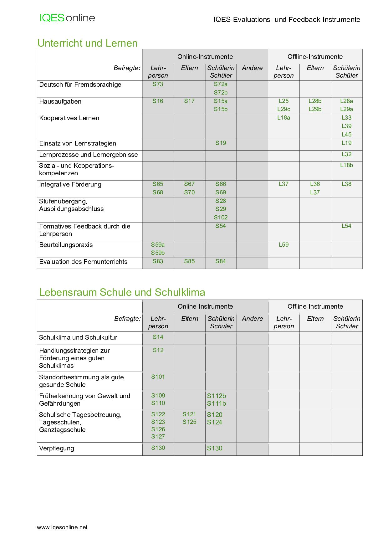 Übersicht Feedback- und Evaluationsinstrumente IQES online