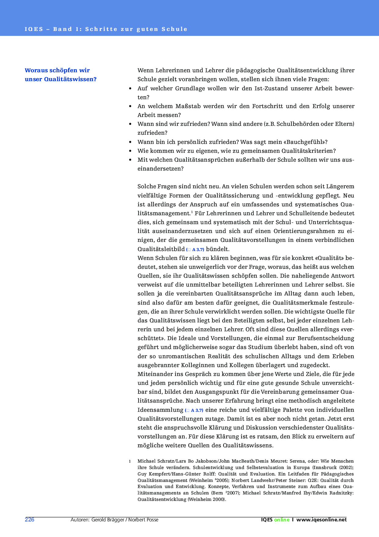 Herkunft: Gerold Brägger, Norbert Posse: Instrumente für die Qualitätsentwicklung und Evaluation in Schulen (IQES), Band 1. hep verlag, 2007. ISBN 9783039053483