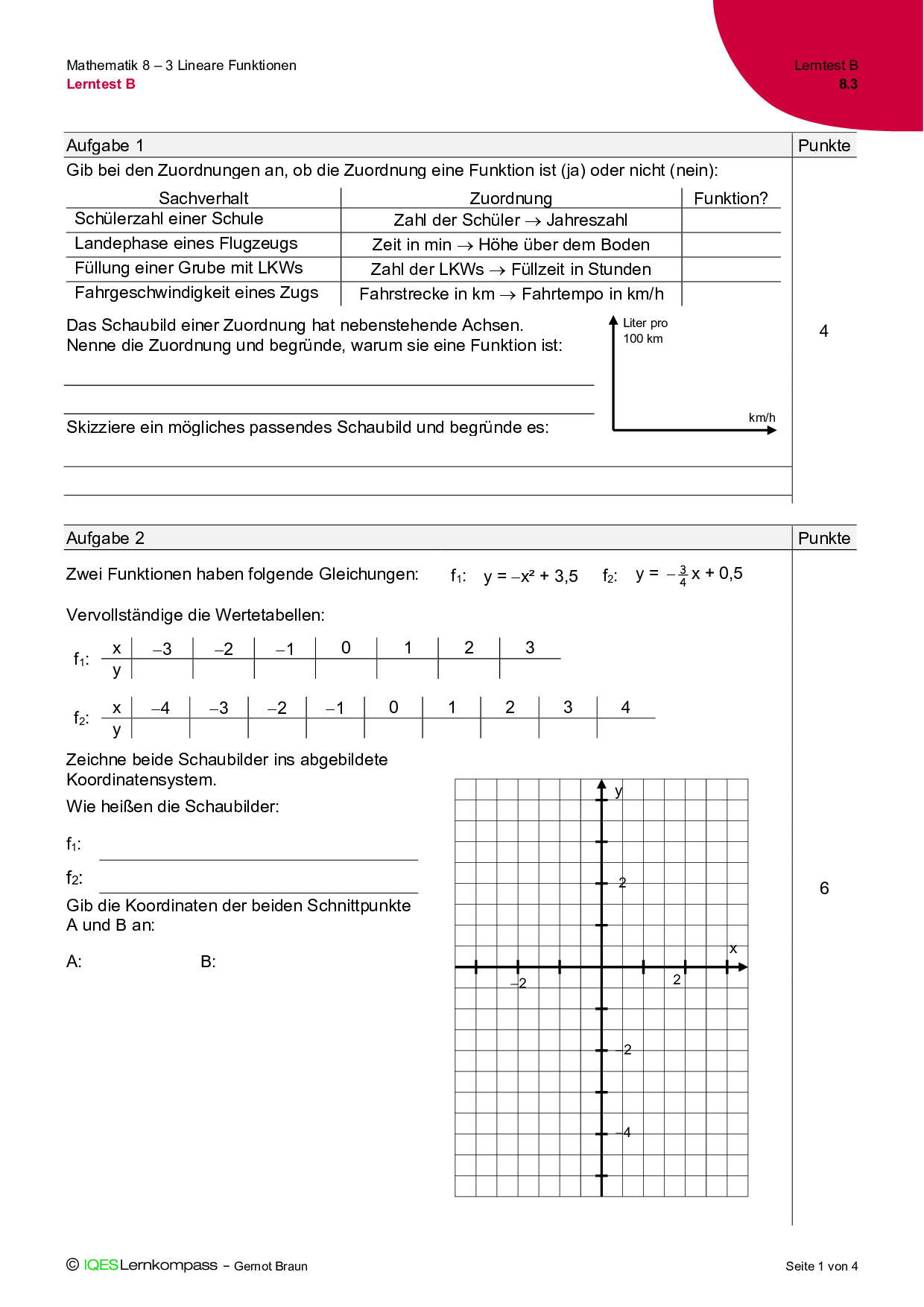 8.3 Lineare Funktionen – Lerntest B