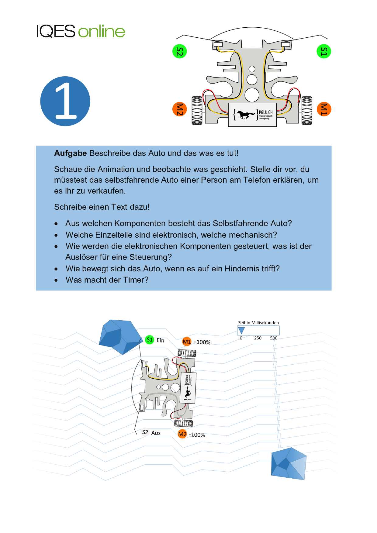 Hier finden Sie die Arbeitsblätter zu den Aufgaben 1 bis 6 zum Projekt «Selbstfahrendes Auto».