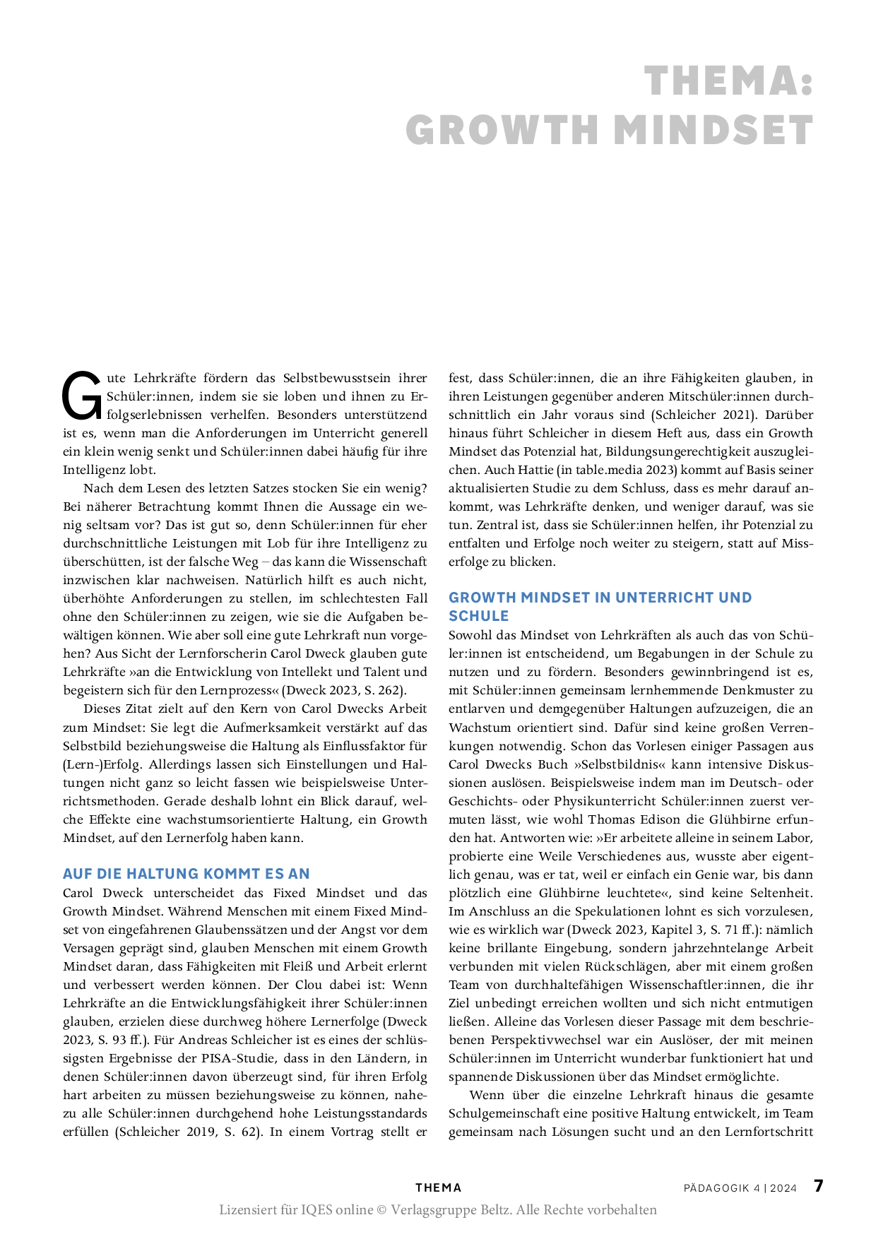 Herkunft: PÄDAGOGIK 4/24, Lizensiert für IQES online © Verlagsgruppe Beltz.