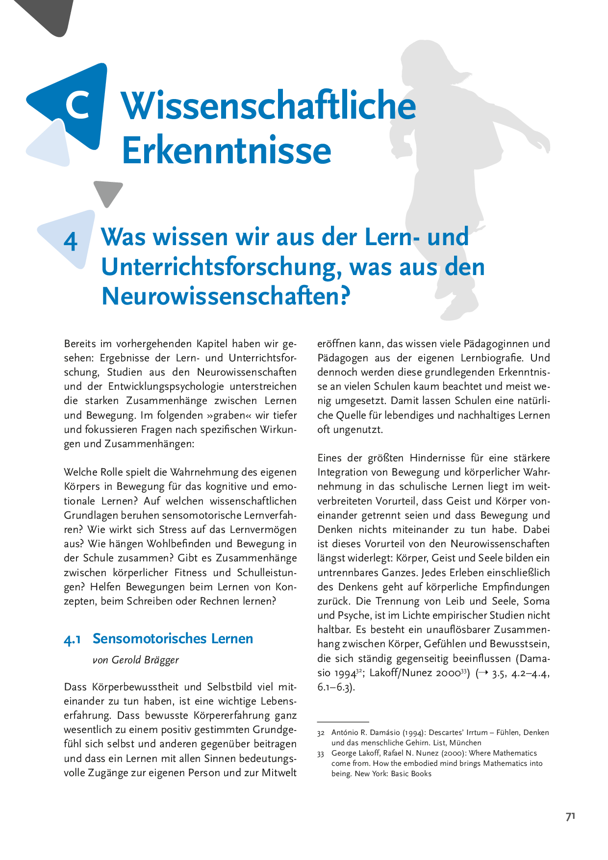 Bereits im vorhergehenden Kapitel haben wir gesehen: Ergebnisse der Lern- und Unterrichtsforschung, Studien aus den Neurowissenschaften und der Entwicklungspsychologie unterstreichen die starken Zusammenhänge zwischen Lernen und Bewegung. Im folgenden «graben» wir tiefer und fokussieren Fragen nach spezifischen Wirkungen und Zusammenhängen.
