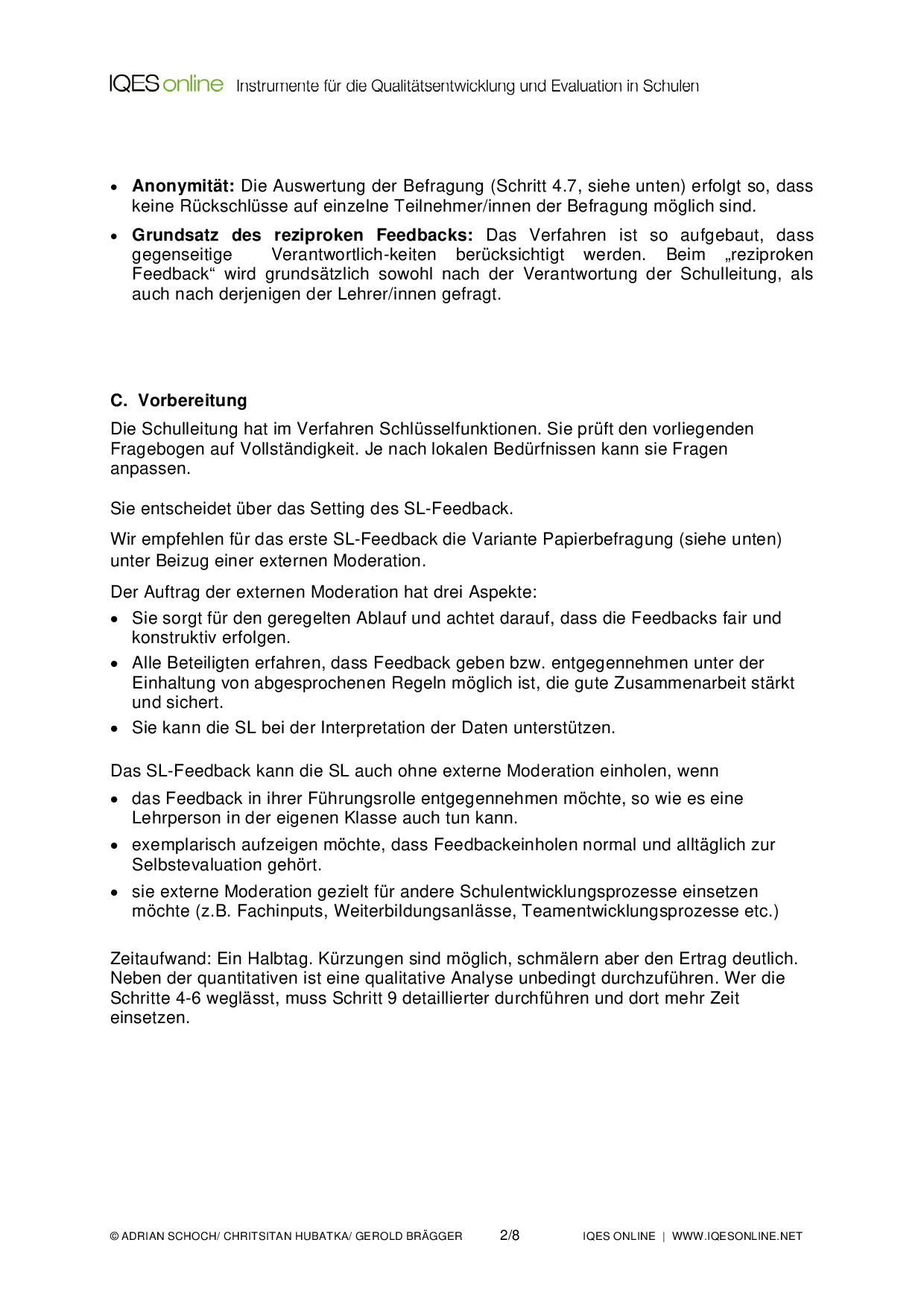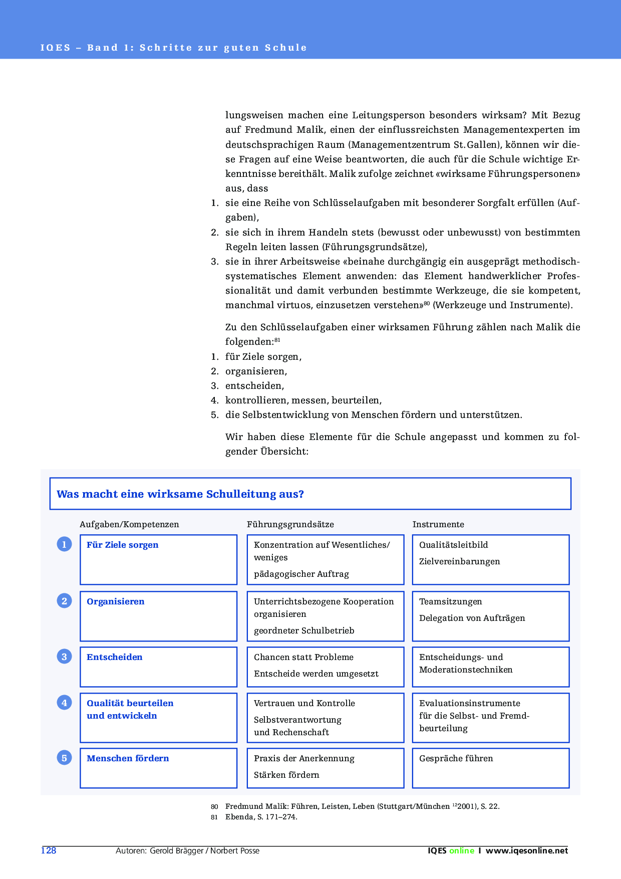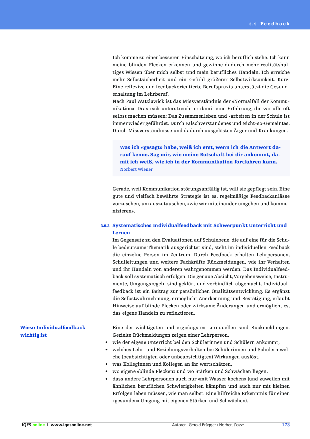 Herkunft: Gerold Brägger, Norbert Posse: Instrumente für die Qualitätsentwicklung und Evaluation in Schulen (IQES), Band 1. hep verlag, 2007. ISBN 9783039053483