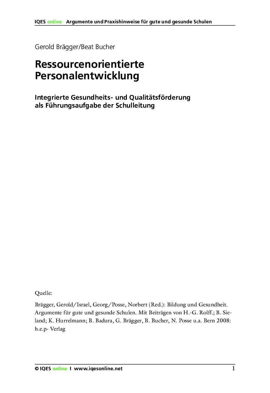 Eine gute, gesunde Schule lässt sich nur als eine gemeinsame Errungenschaft von Schulleitung und Lehrerschaft realisierbar. Das IQES-Handbuch zeigt Wege auf, wie eine sowohl qualitäts- wie auch gesundheitsorientierte Schulförderung erreicht werden kann.