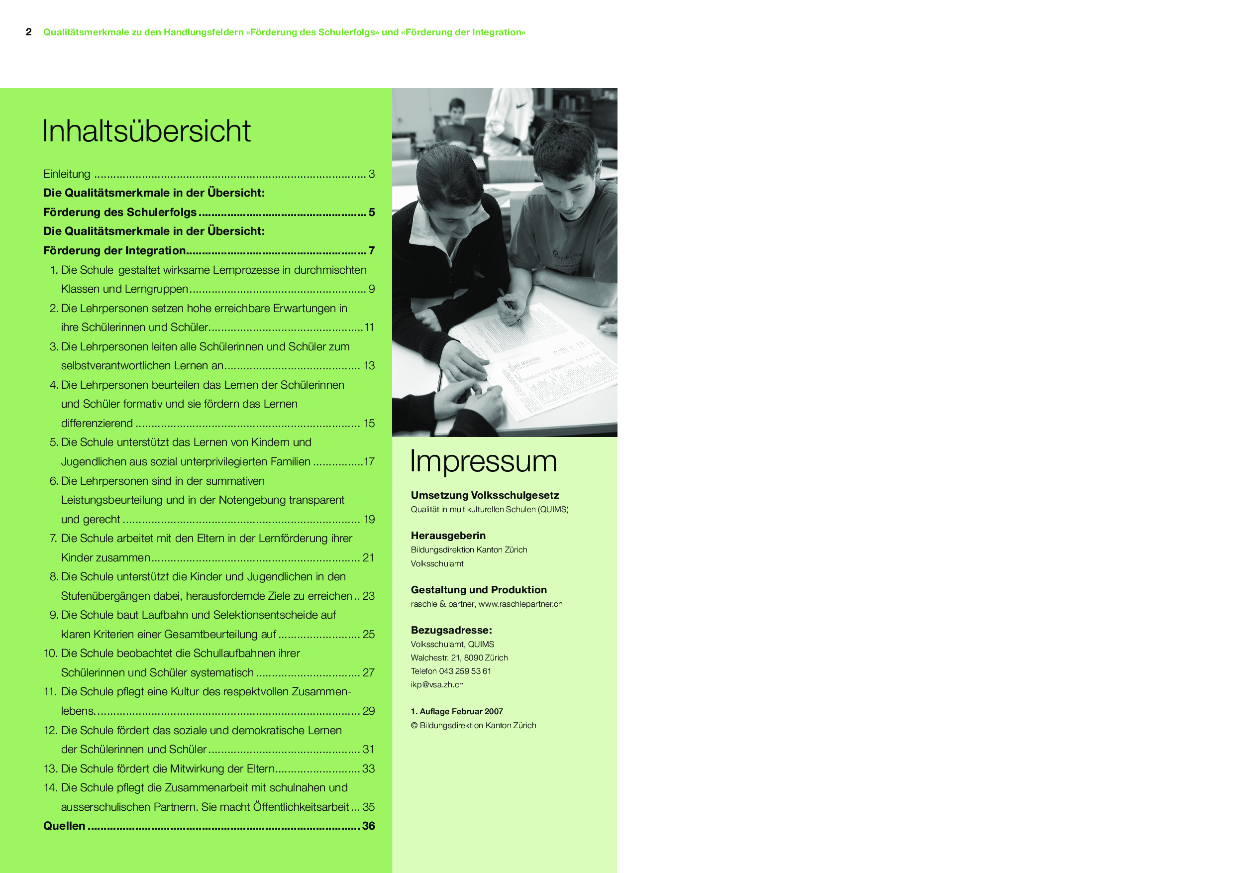 In diesem Themenheft geht es um Qualitätsmerkmale in den Handlungsfeldern «Förderung des Schulerfolgs» und «Förderung der Integration». Es kann als Arbeitsinstrument für die Schulentwicklung eingesetzt werden.
