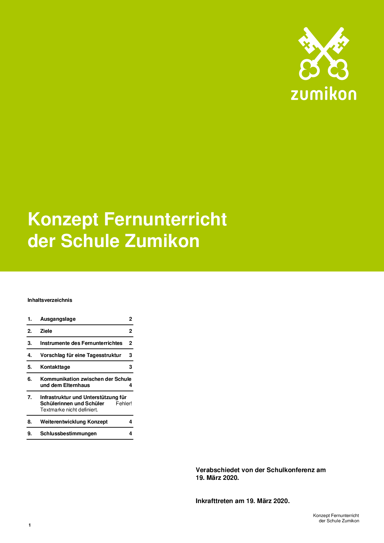 Das Konzept wurde erarbeitet, nachdem wegen der Corona-Pandemie sämtliche Schulen in der Schweiz schliessen mussten.