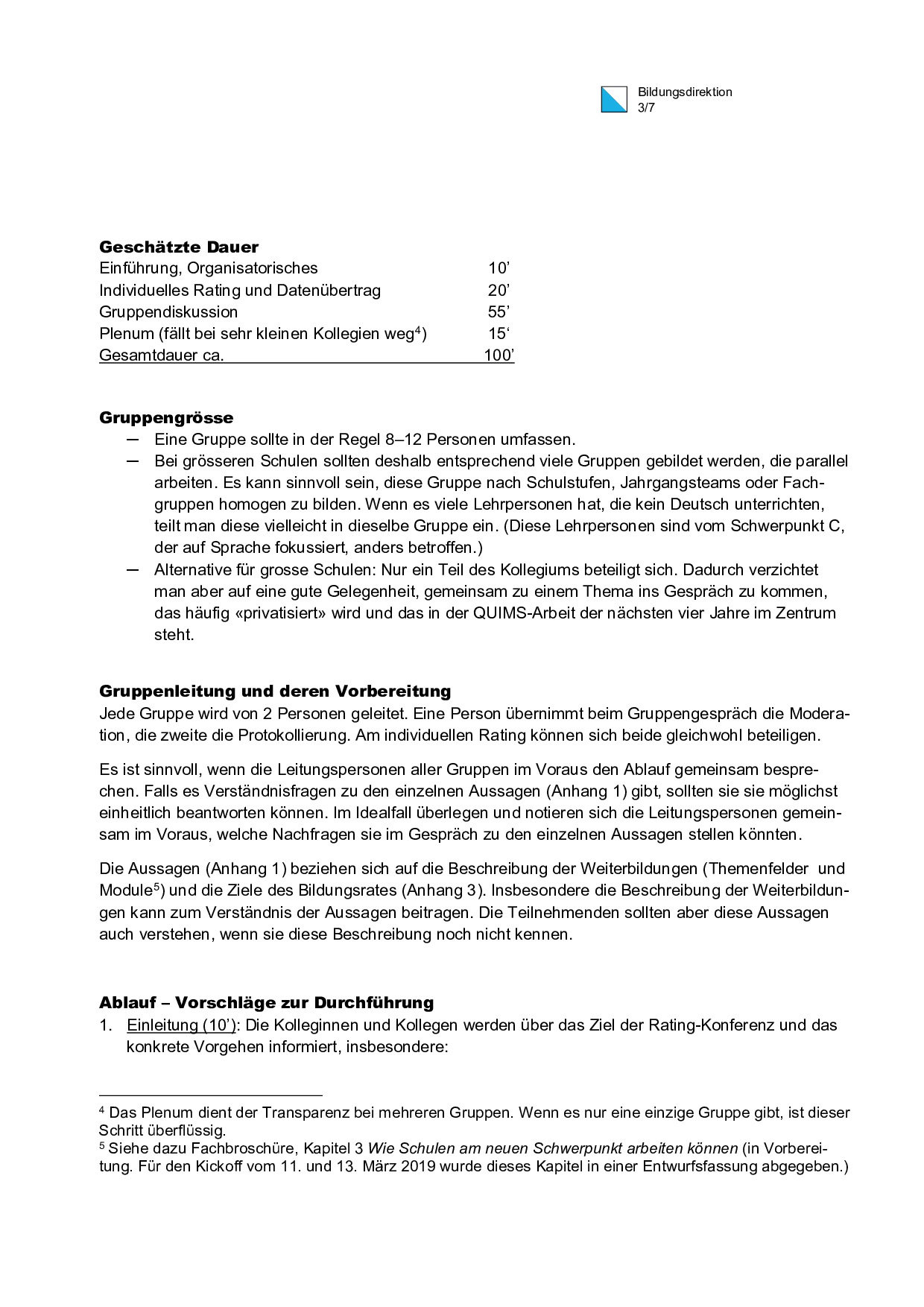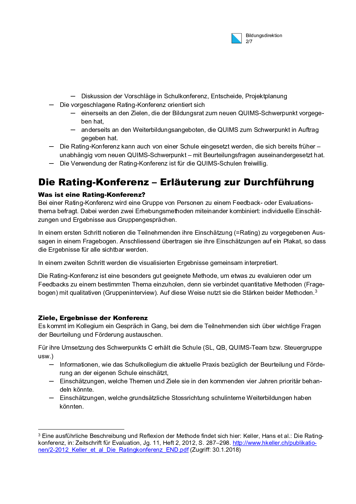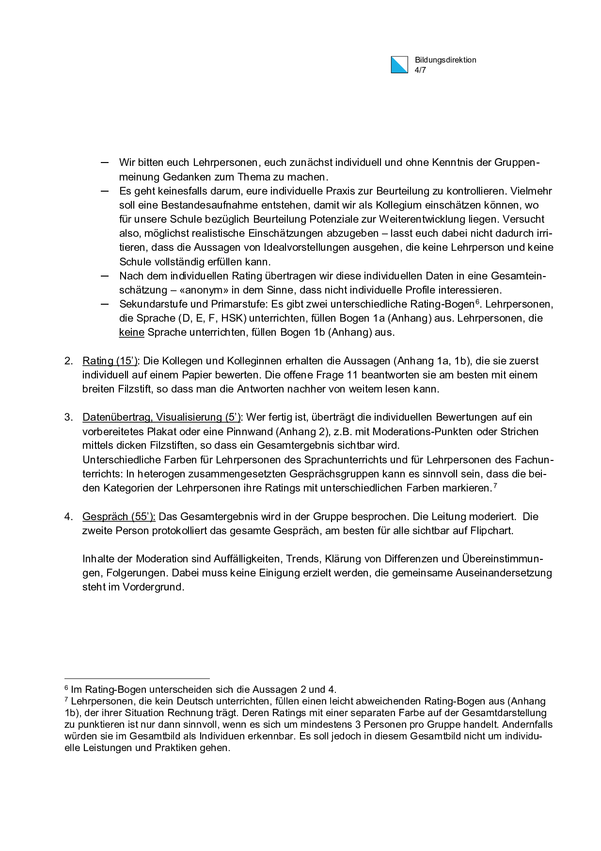 Ratingkonferenz für das Kollgium - Auszug aus der Broschüre «Mit Leitsätzen zu einer gemeinsamen Beurteilungskultur»