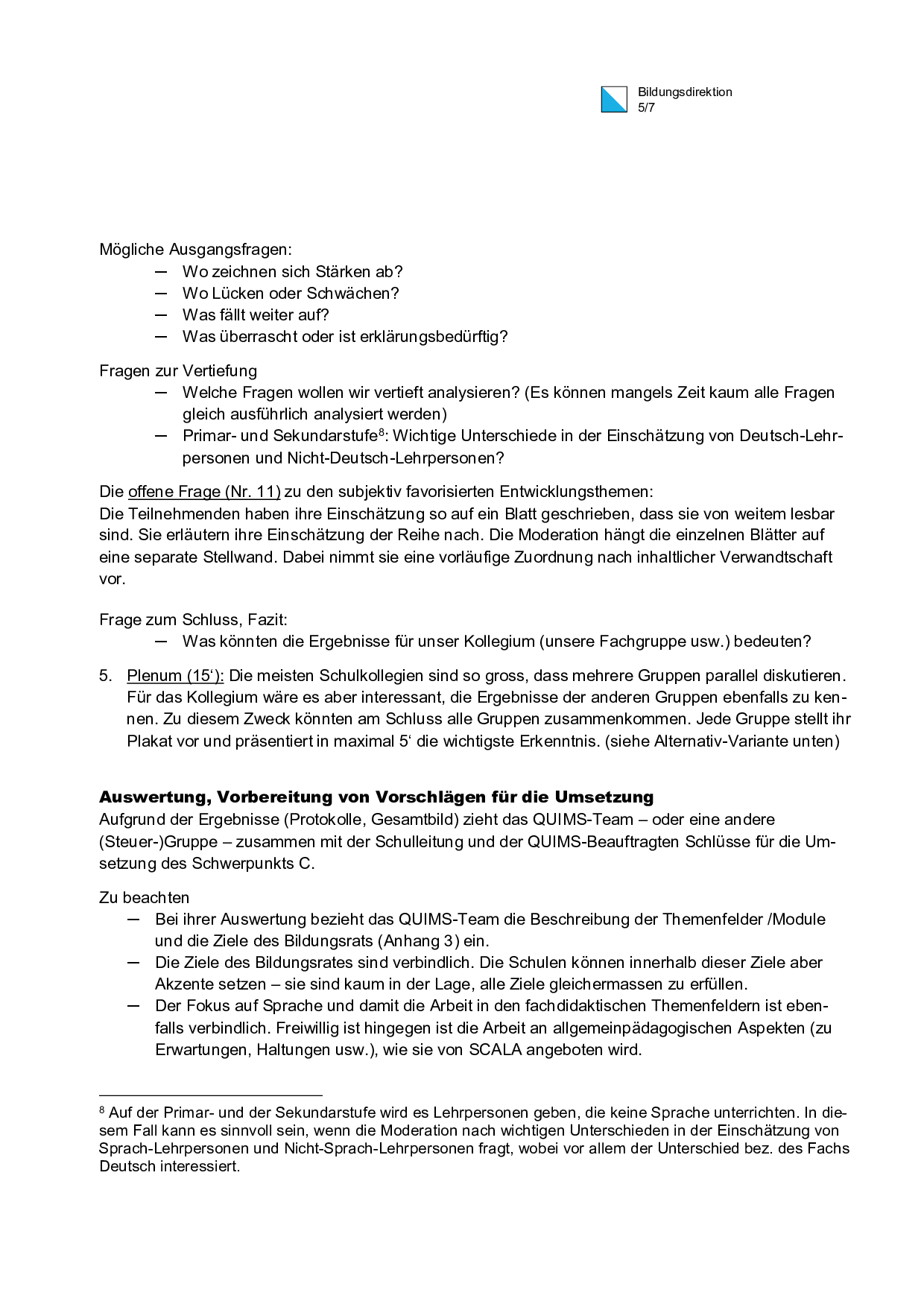 Autor/Autorin: Bildungsdirektion Kanton Zürich, Volksschulamt, kantonales QUIMS-Team