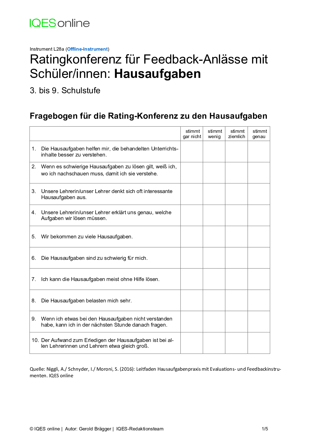 In Kombination mit dem Instrument L11b (Beobachtungsbogen zur Klassenführung) für die gegenseitige Visitation geeignet.