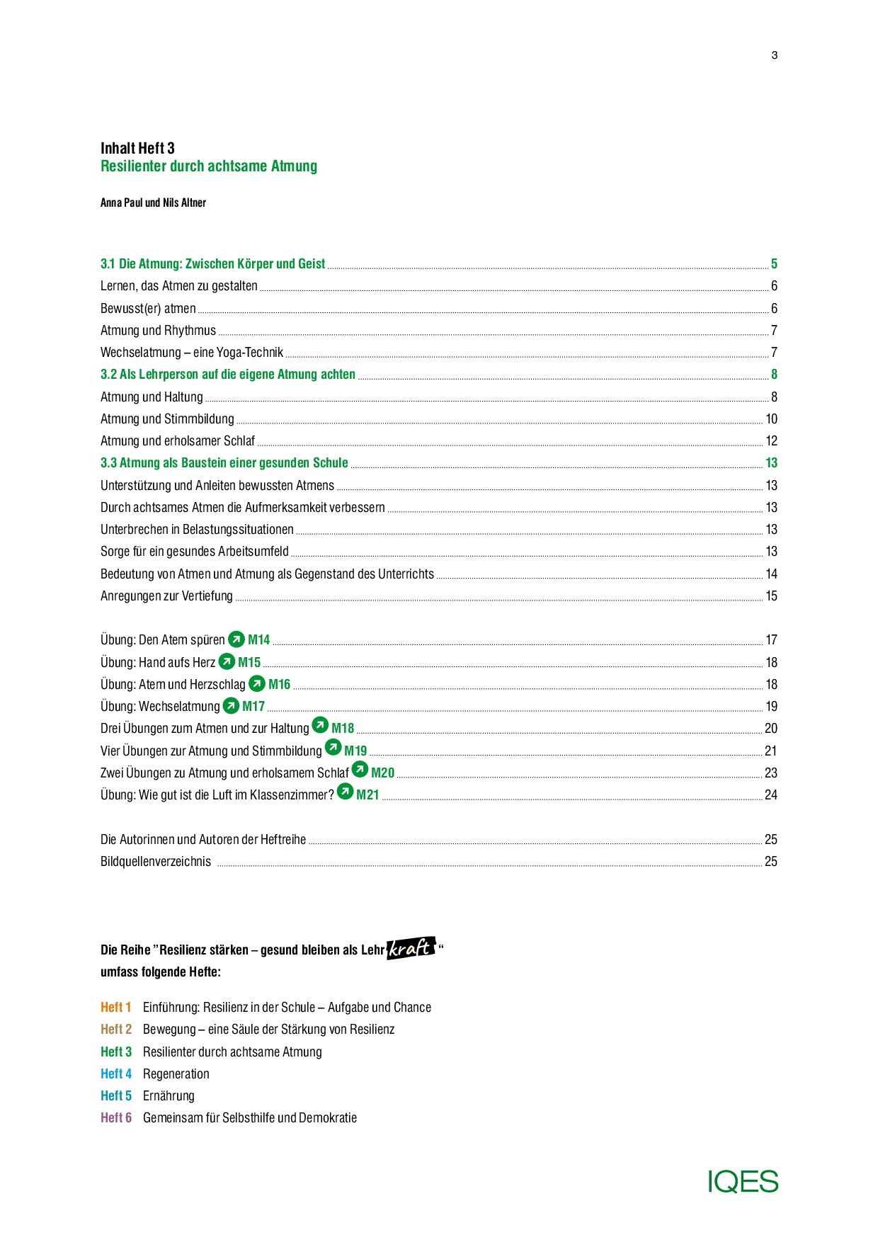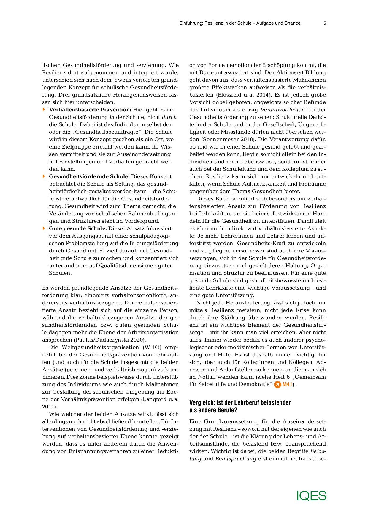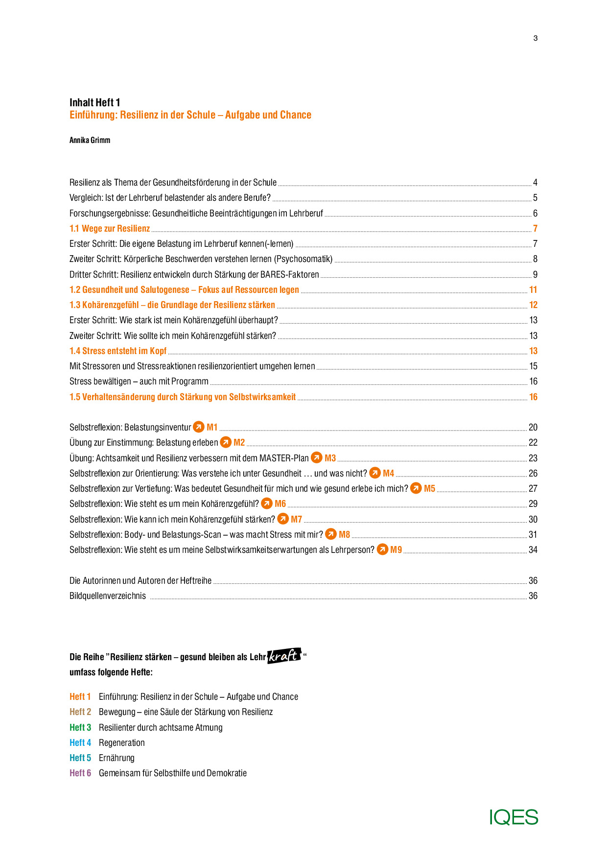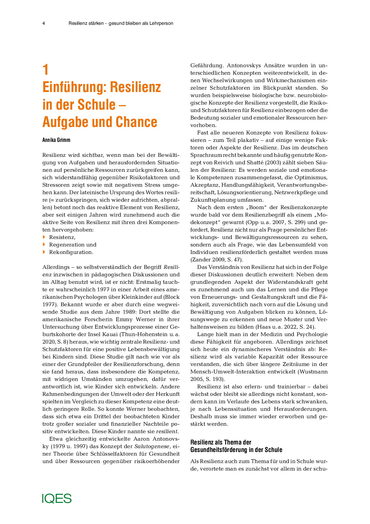 Immer mehr Lehrkräfte fragen sich, wie sie ihre Stressresilienz verbessern und ihre Gesundheitsressourcen sinnvoll nutzen können. Unsere IQES-Leitfäden stellen Ihnen fünf wirksame Strategien vor, um die eigene Gesundheit und Widerstandskraft zur stärken. Mit praxisnahen Übungen und Anregungen für mehr persönliche und berufliche Achtsamkeit finden Sie darin Hilfen zur Selbsthilfe für Ihren beruflichen Alltag.