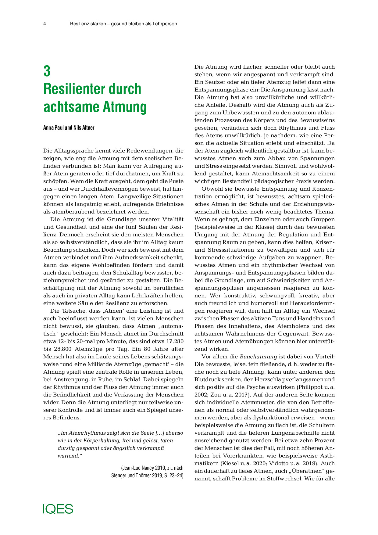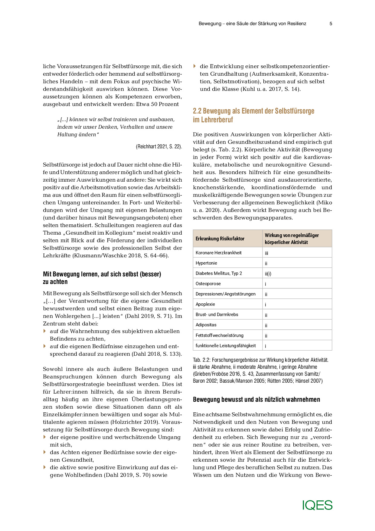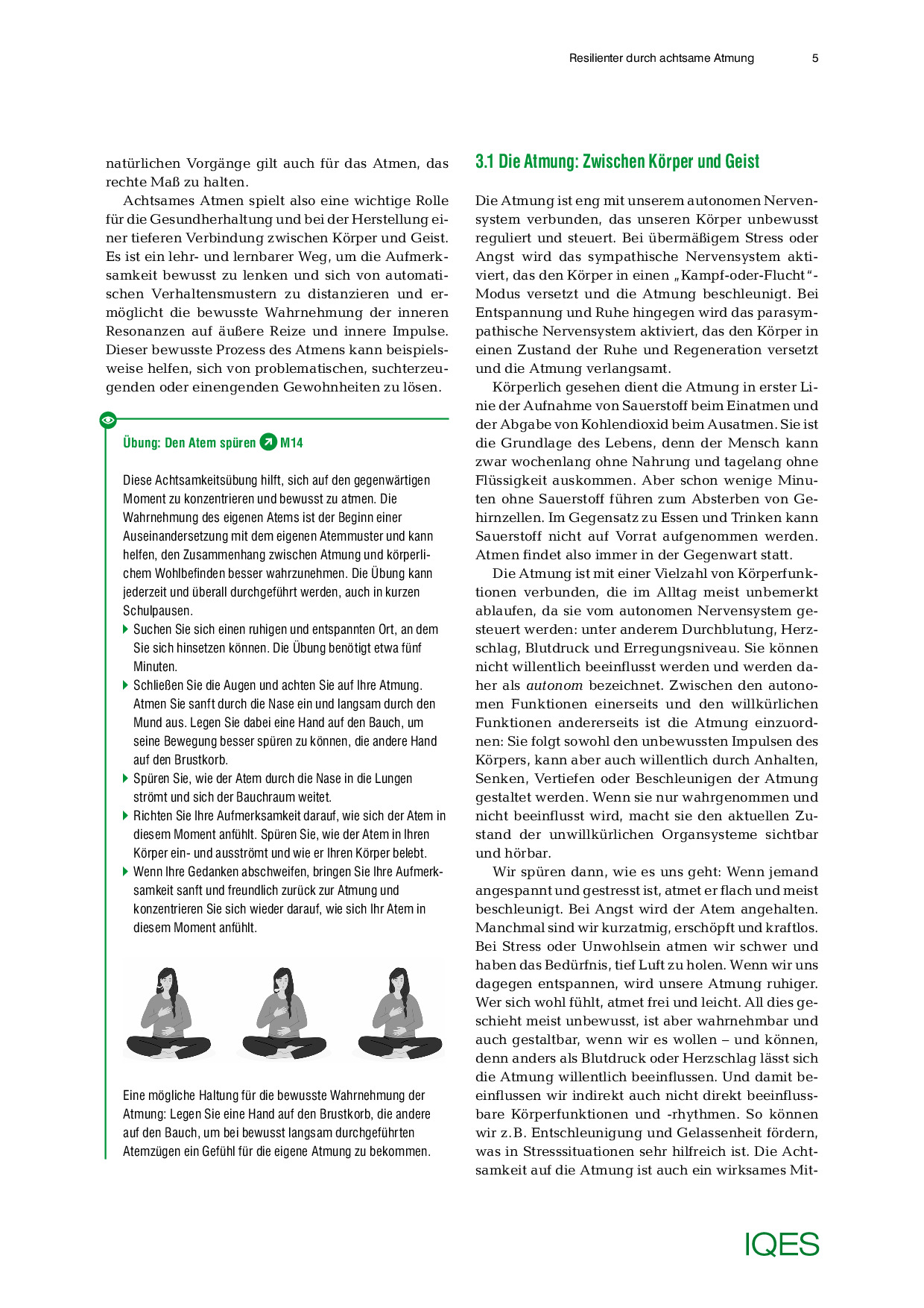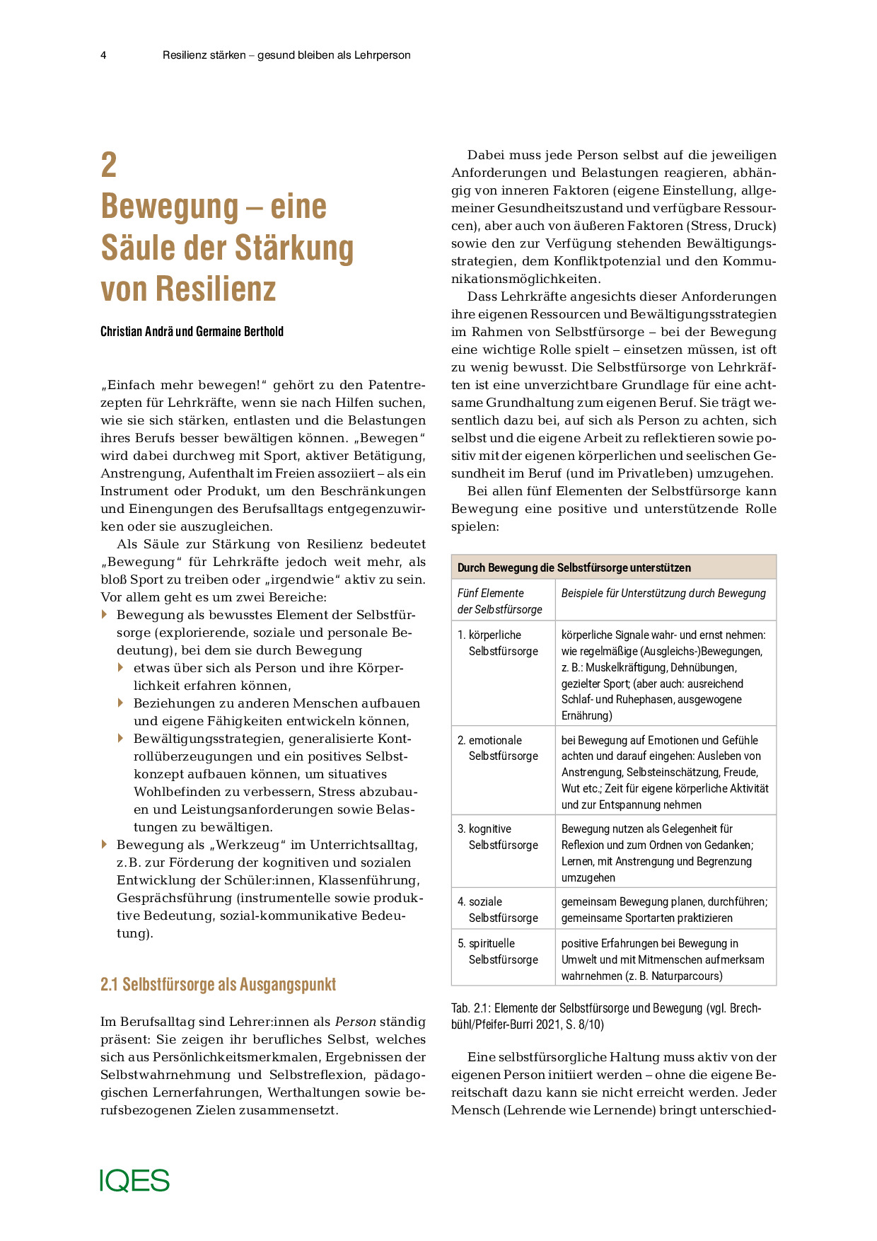 Immer mehr Lehrkräfte fragen sich, wie sie ihre Stressresilienz verbessern und ihre Gesundheitsressourcen sinnvoll nutzen können. Unsere IQES-Leitfäden stellen Ihnen fünf wirksame Strategien vor, um die eigene Gesundheit und Widerstandskraft zur stärken. Mit praxisnahen Übungen und Anregungen für mehr persönliche und berufliche Achtsamkeit finden Sie darin Hilfen zur Selbsthilfe für Ihren beruflichen Alltag.