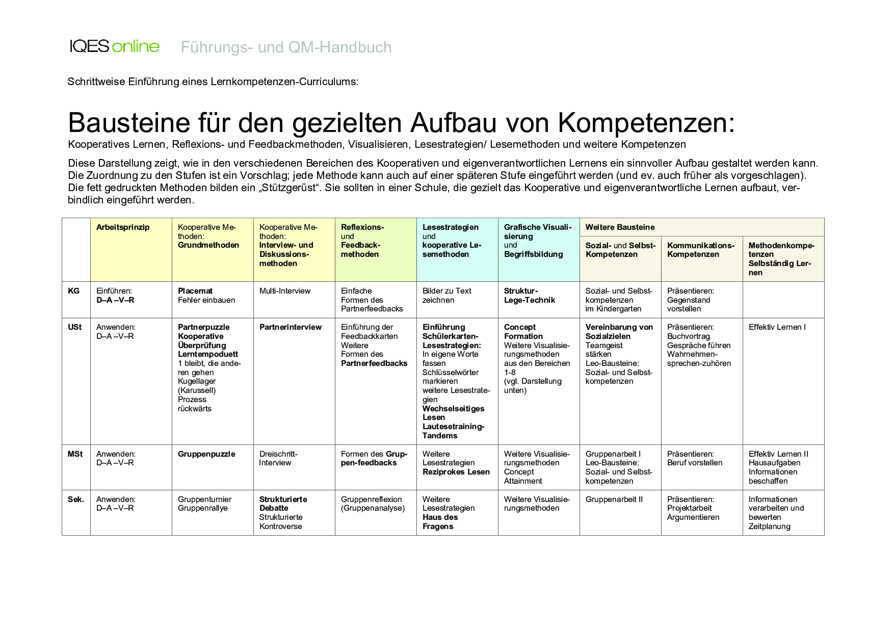 Bausteine für die Förderung überfachlicher Kompetenzen und zum schrittweisen Aufbau eines Lernkompetenzen-Curriculums.