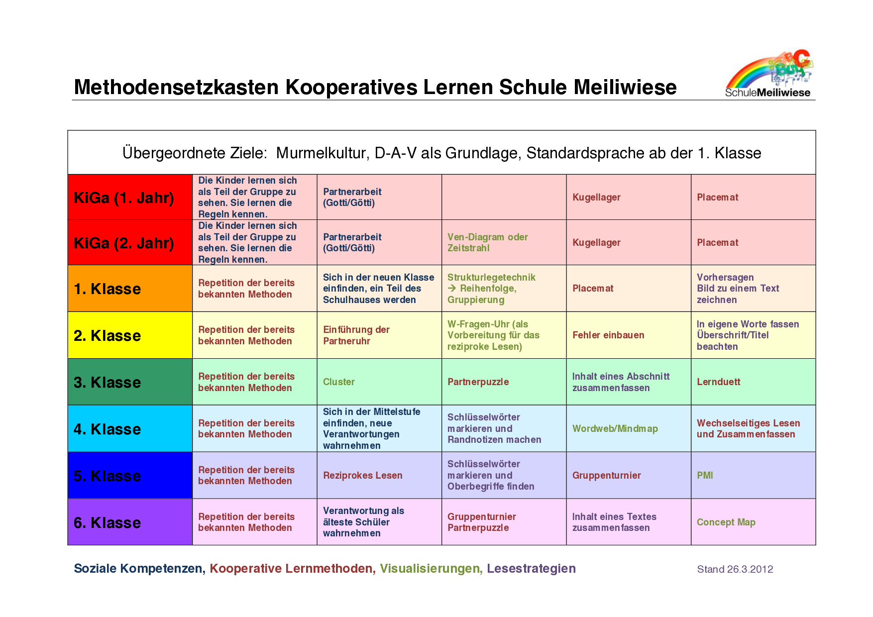In diesem Dokument fasst die Schule Meiliwiese ihre Ziele zu den Kooperativen Lernmethoden zusammen.