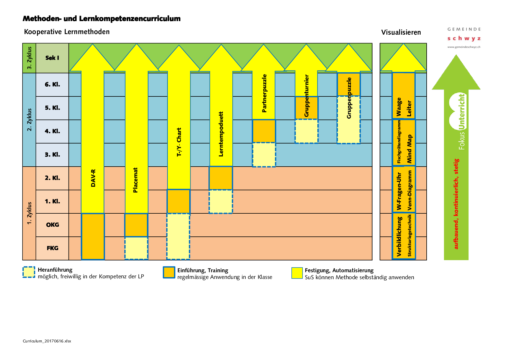 Ein Diagramm der Gemeinde Schwyz zum Methoden- und Lernkompetenzencurriculum für Kooperative Lernmethoden.