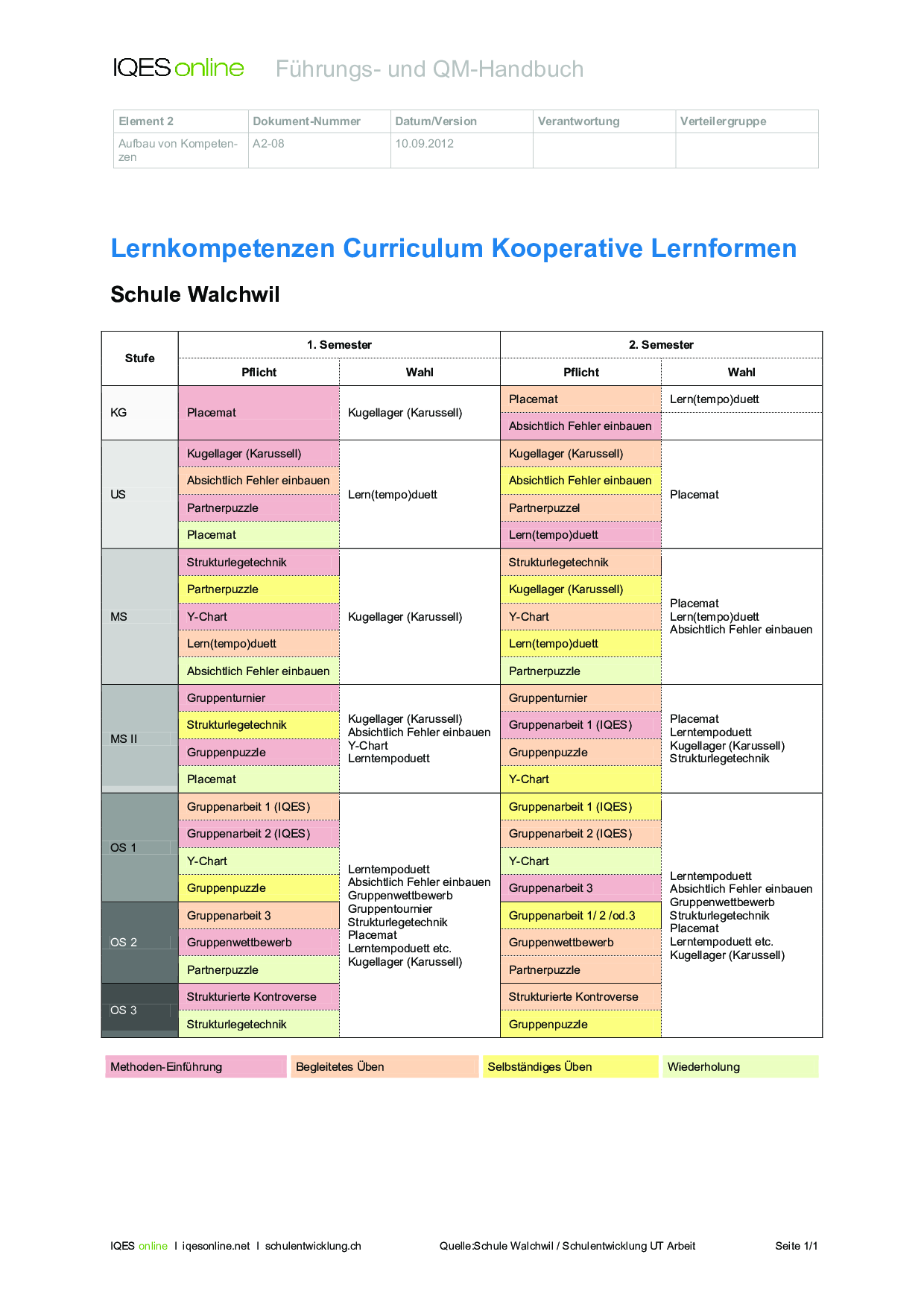 Ein Auszug aus dem Curriculum der Kooperativen Lernformen der Schule Walchwil.