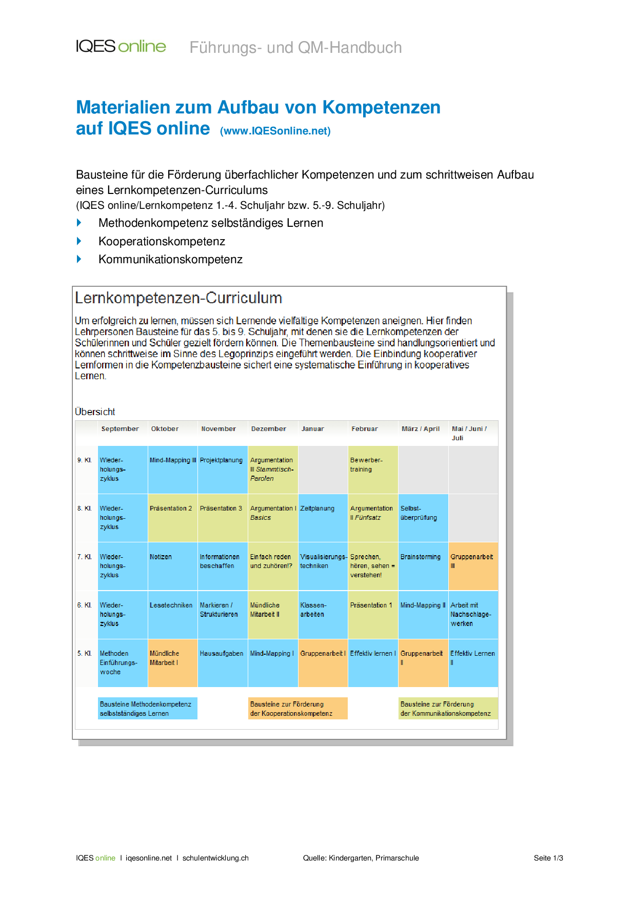 In diesem Dokument befindet sich ein exemplarischer Lernkompetenzen-Curriculum der Schule Drüwil und Schule Seengen. Dieser kann als Vorlage oder Orientierungshilfe dienen.