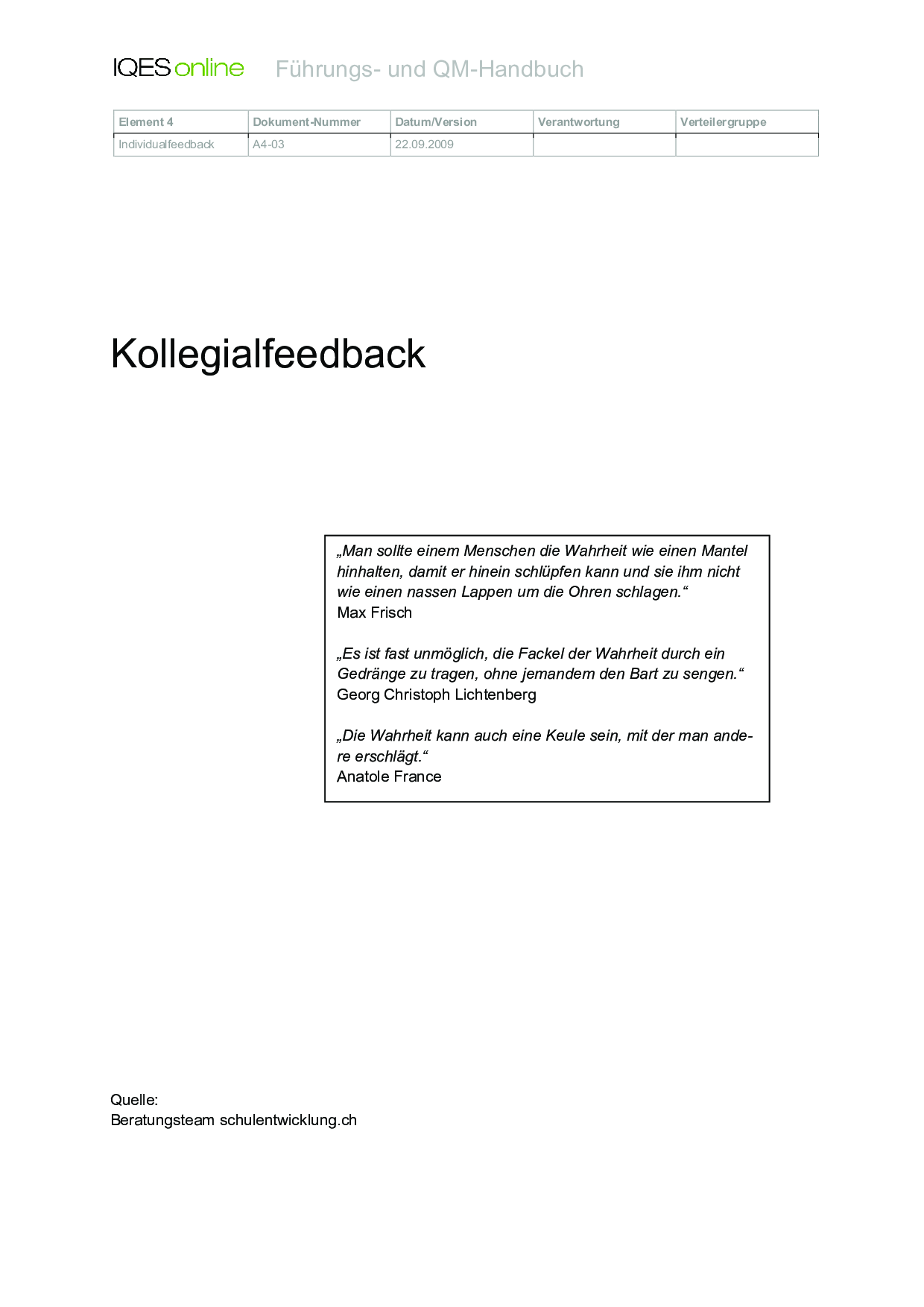 Element 4 - Individualfeedback : Prozessbeschreibung Kollegialfeedback, Kaufmännische Schule, Friedrichshafen