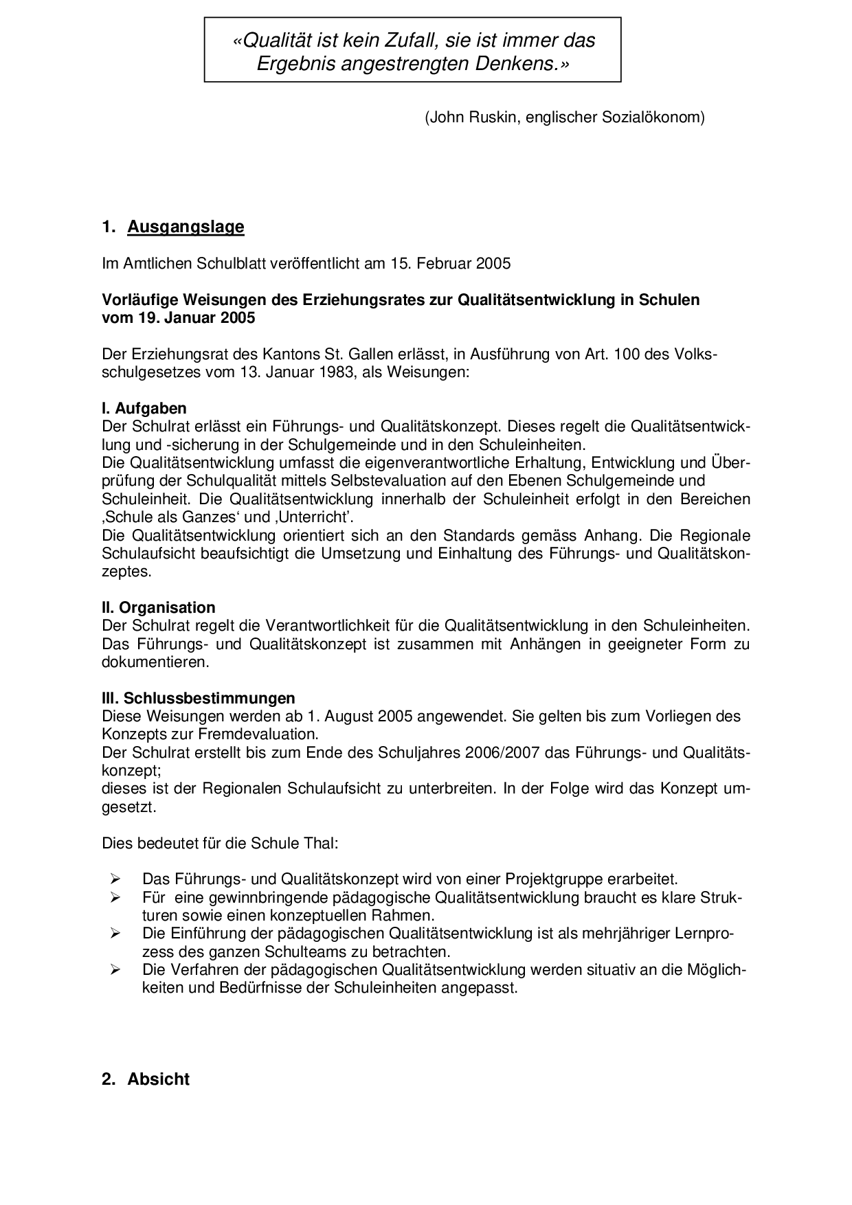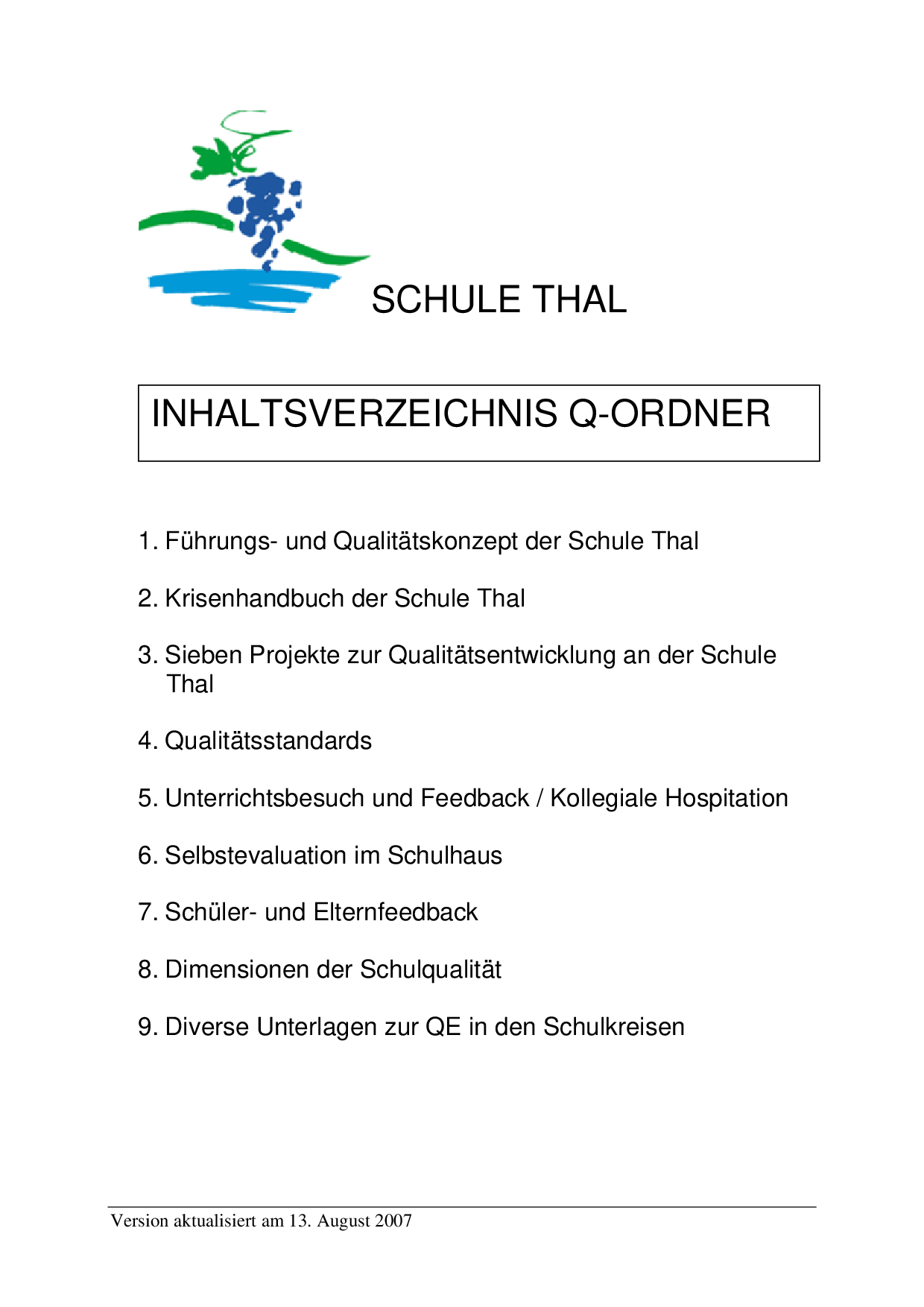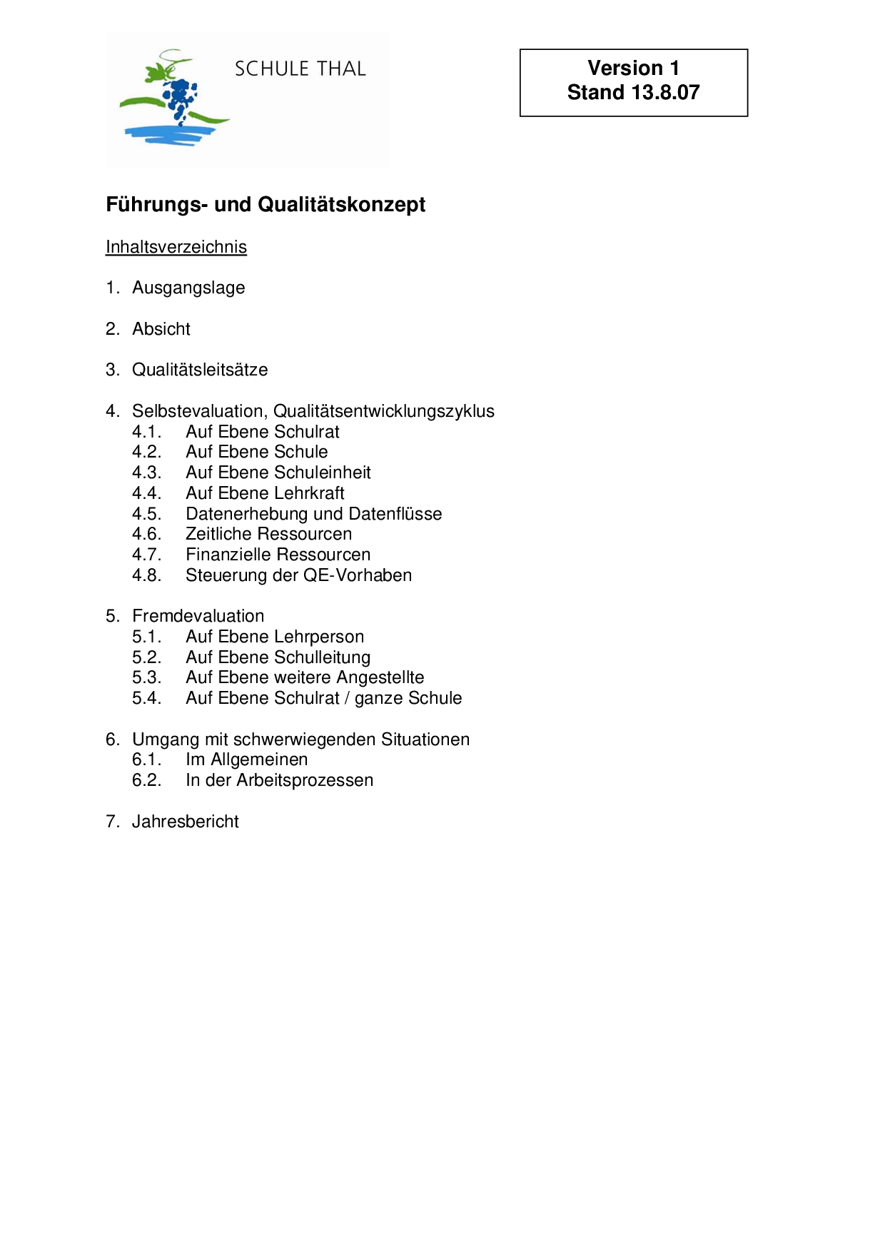 Vereinbarungen zur Selbstevaluation im Schulhaus Bsp. Thal (Kap. 4)