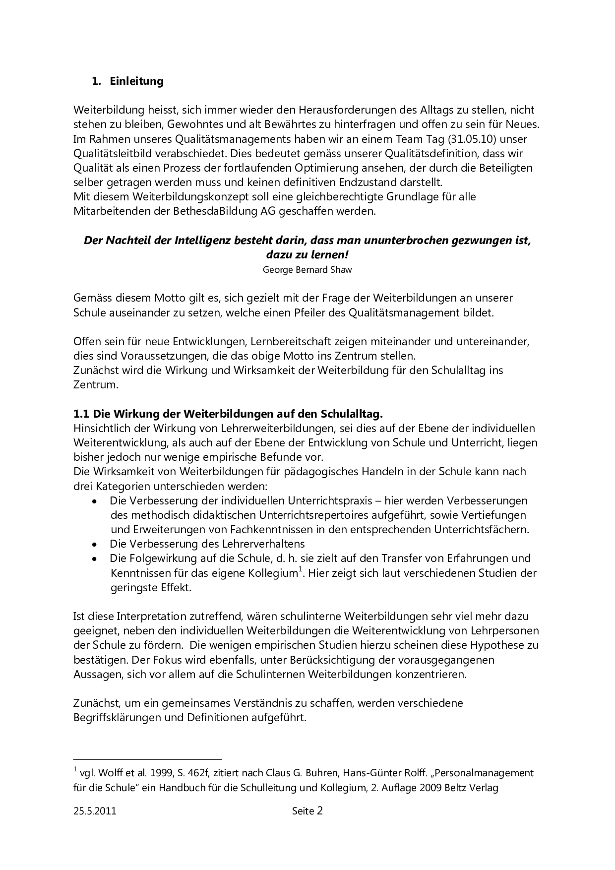 Mit dieser Arbeit verfolgen die Autoren das Ziel, sich mit der Thematik Weiterbildung auseinanderzusetzen, auf Grund der kantonalen Vorgaben ein Weiterbildungskonzept zu erarbeiten sowie das dabei erworbene Wissen in den praktischen Führungsalltag zu transferieren.