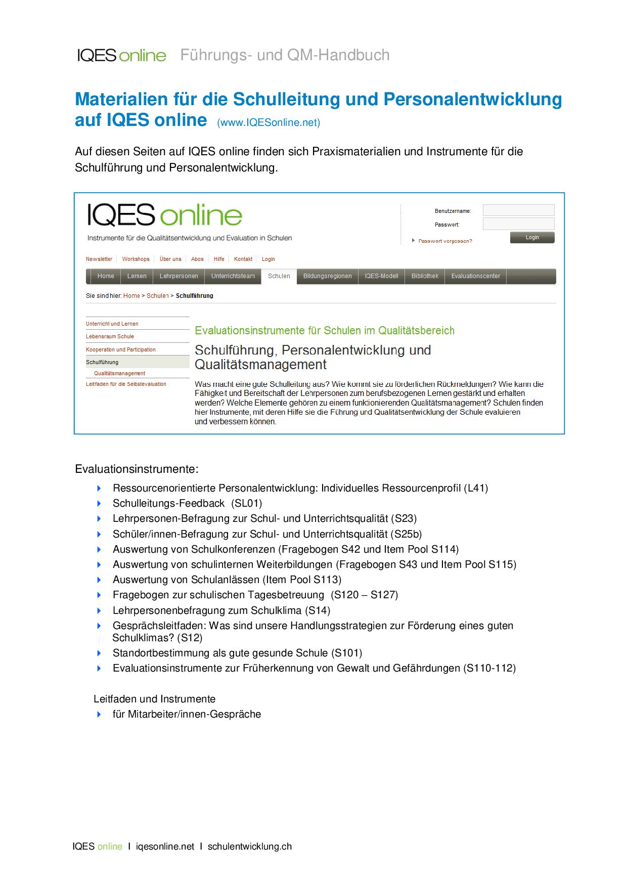 In diesem Dokument finden Sie eine Auflistung von Materialen für die Schulleitung und Personalentwicklung auf IQES online. Damit ist eine leichtere Navigation auf der Suche nach passendem Material möglich.