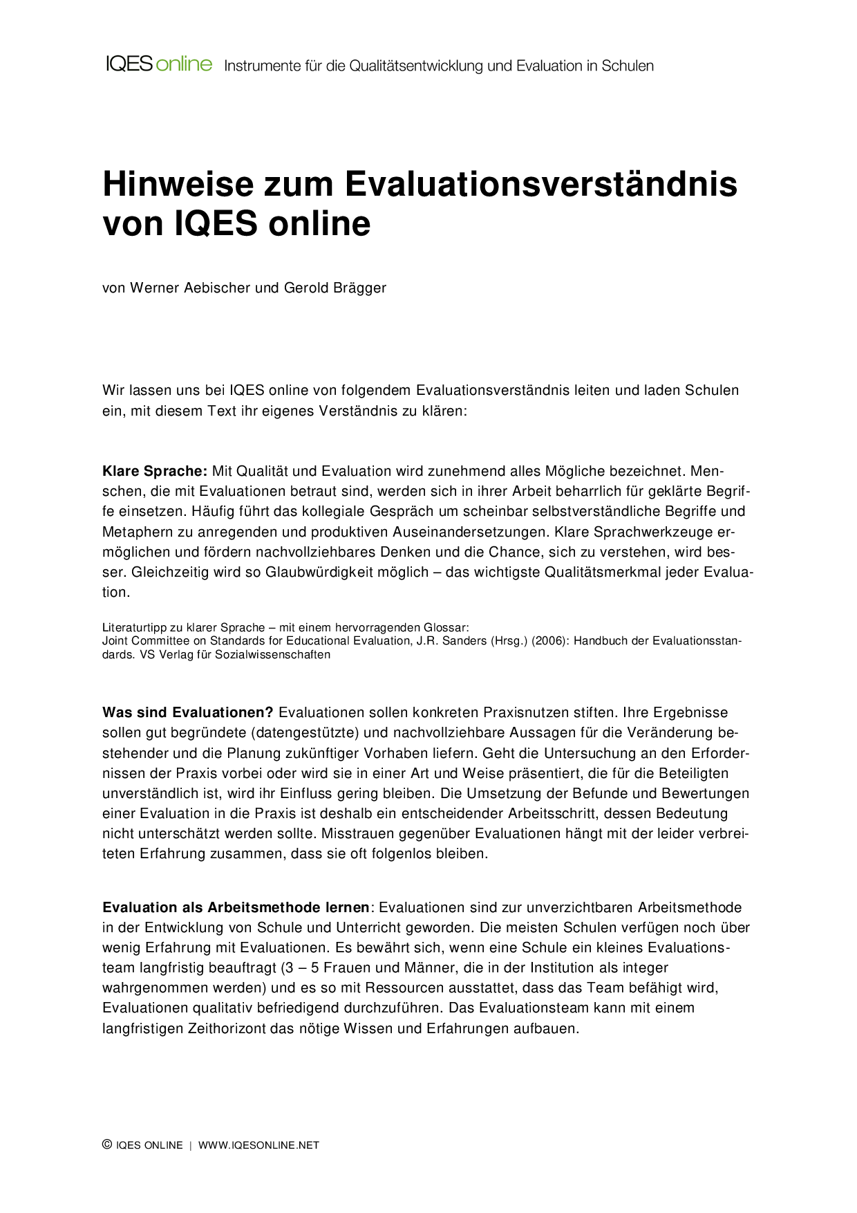 Wir lassen uns bei IQES online von folgendem Evaluationsverständnis leiten und laden Schulen ein, mit diesem Text ihr eigenes Verständnis zu klären.