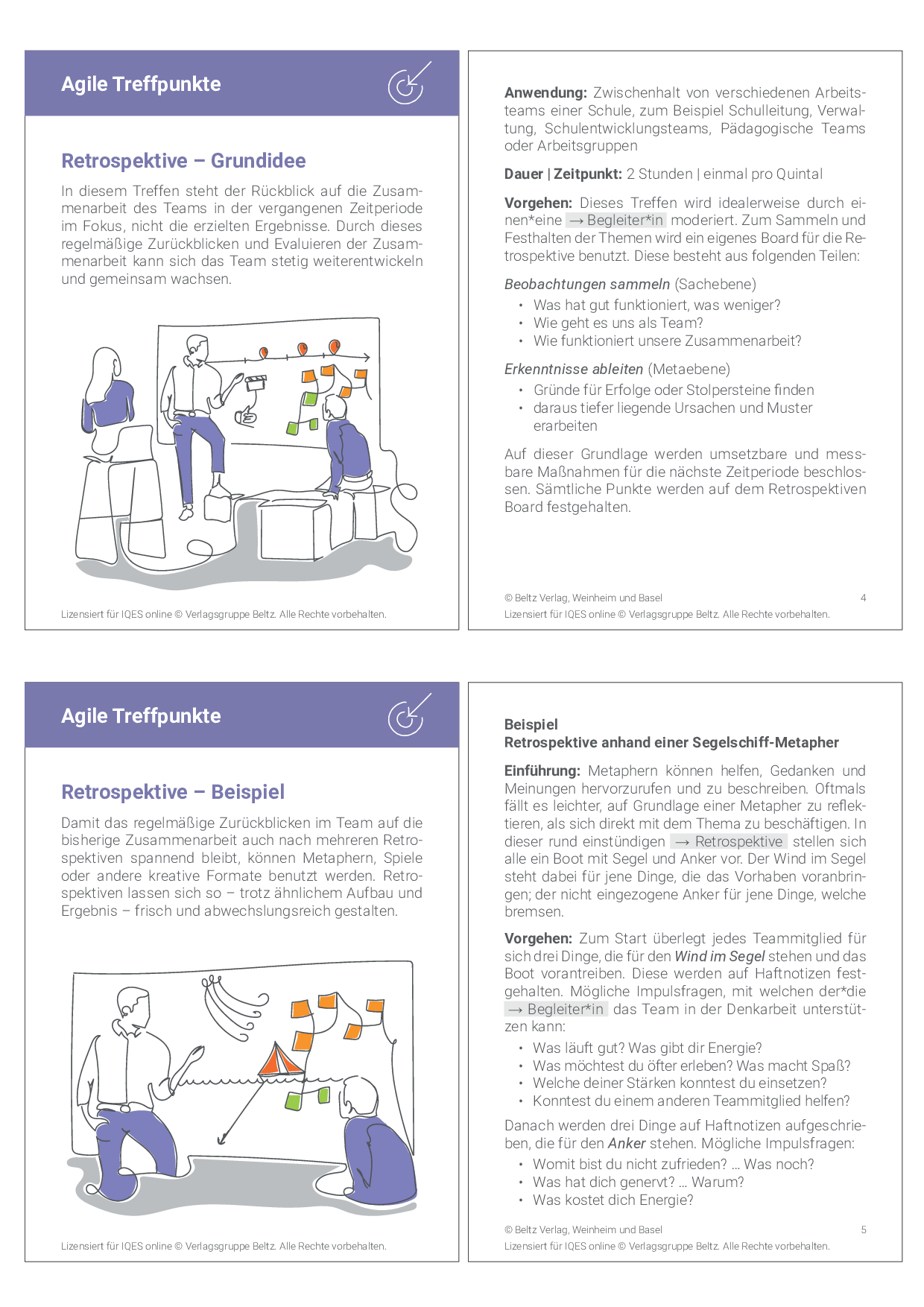Alle Arbeitstreffen des Unterrichtsteams werden mit agilen Elementen wie Check-In, Priorisieren, Retrospektive und Check-out organisiert.