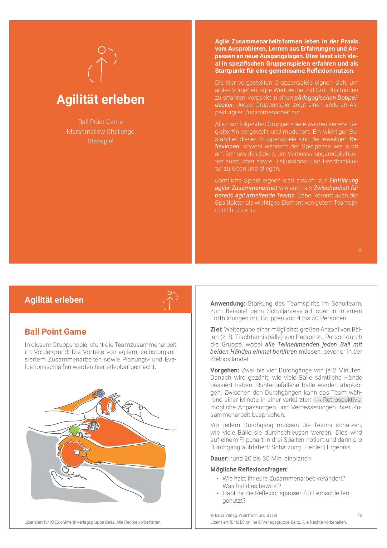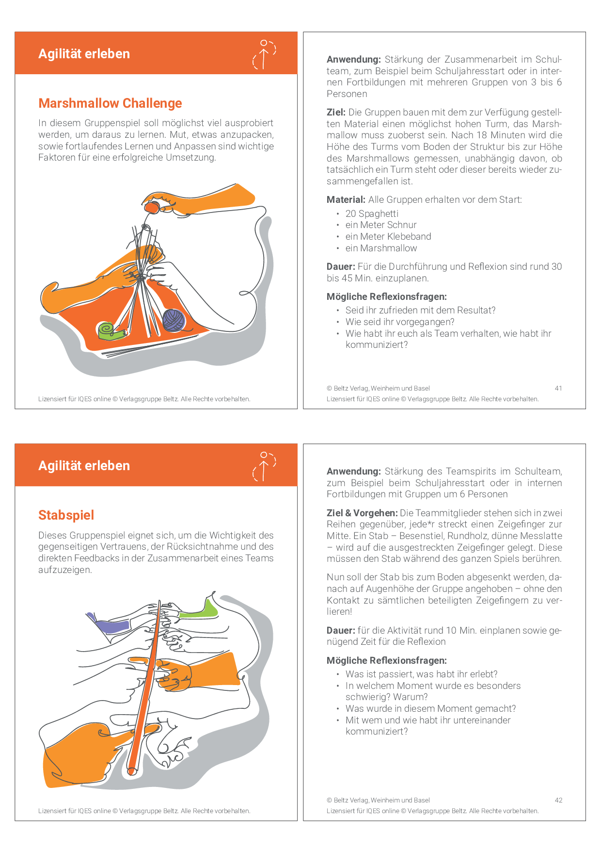 Agile Zusammenarbeitsformen leben in der Praxis vom Ausprobieren, Lernen aus Erfahrungen und Anpassen an neue Ausgangslagen. Dies lässt sich ideal in spezifischen Gruppenspielen erfahren und als Startpunkt für eine gemeinsame Reflexion nutzen.