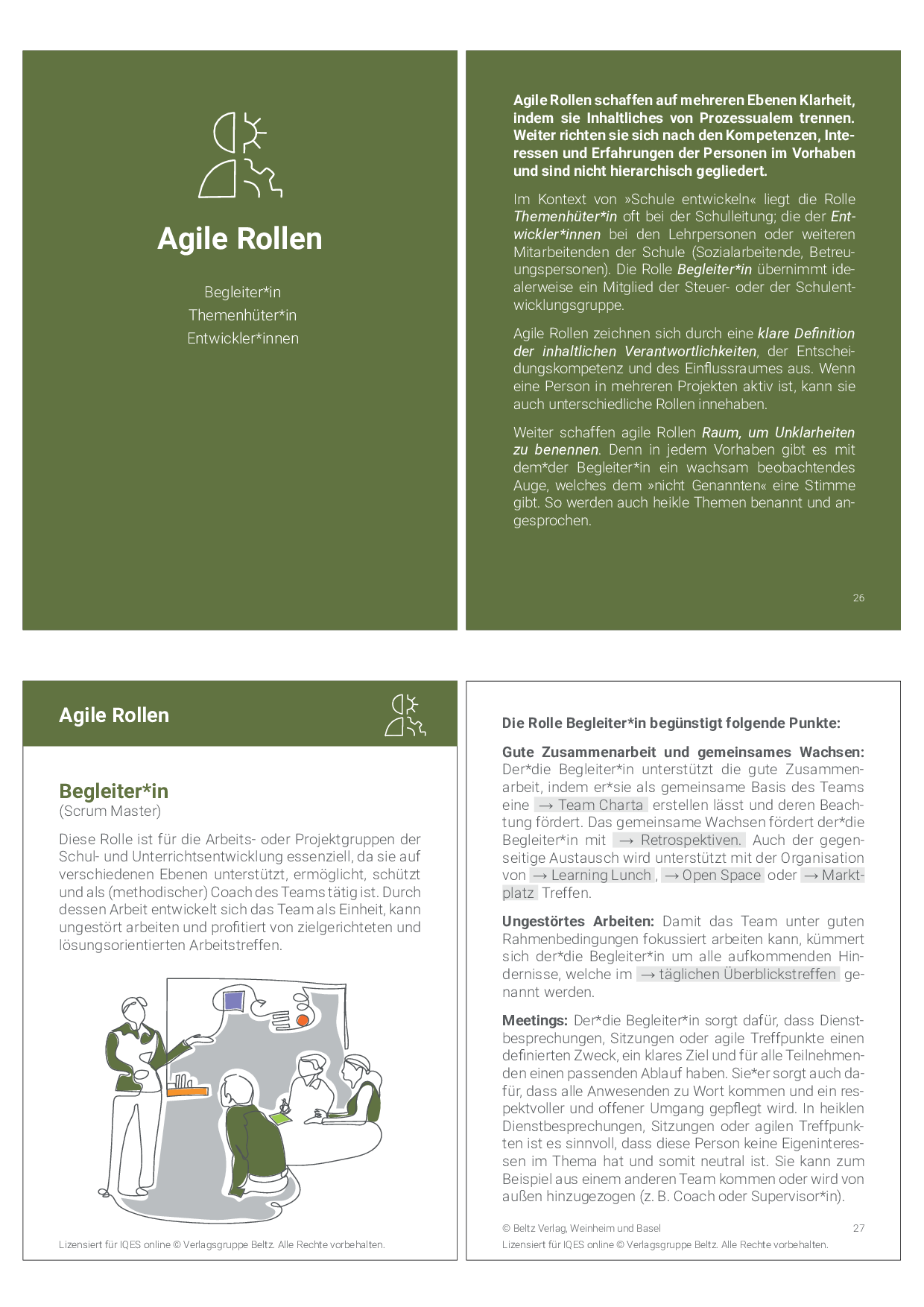 Welches sind die wichtigen Rollen und Grundhaltungen für agile Schulentwicklung? Welches sind geeignete Vorgehensweisen und Werkzeuge? Die Karten aus dem Kartenset »Schule agil entwickeln« liefern hier die passenden Denk- und Umsetzungsanstöße.